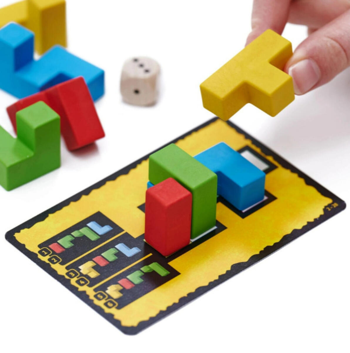 Ubongo utsågs till årets familjespel 2009. Klurigt och utmanande med pusselbitar i tre eller fyra bitar i olika former. Den spelare som först lyckas lösa det kluriga pusslet vinner juveler. När spelet är slut, vinner den spelare med flest juveler i samma färg. För 2-4 spelare. Speltid ca 30 min. Av FSC-märkt kartong. PVC-fri. Från 8 år.