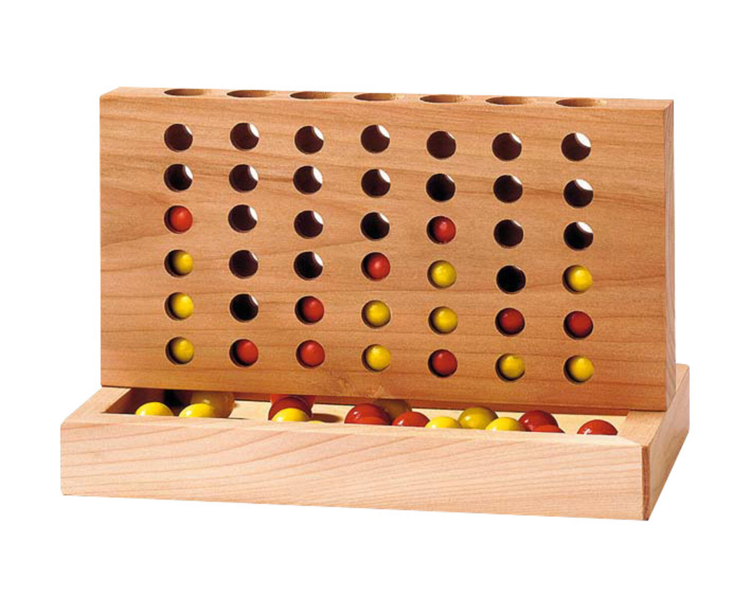 Ett klassiskt spel i fin kvalitet och stort format. Kan användas ute men bör tas in nattetid och vid regn. Spelet går ut på att få 4 av sina marker i rad först, antingen lodrätt, vertikalt eller diagonalt. När spelet är slut tömmer man enkelt ut markerna och börjar om igen. Förvaringspåse ingår. Mått: H48xB60 cm. Av FSC-märkt trä. PVC-fri. Från 6 år.