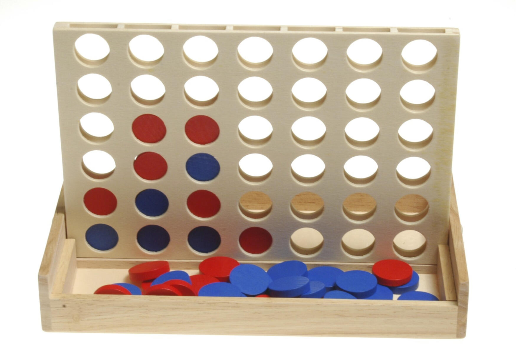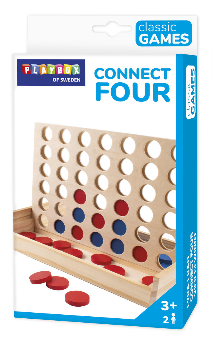 Ett klassiskt spel i fin kvalitet och stort format. Kan användas ute men bör tas in nattetid och vid regn. Spelet går ut på att få 4 av sina marker i rad först, antingen lodrätt, vertikalt eller diagonalt. När spelet är slut tömmer man enkelt ut markerna och börjar om igen. Förvaringspåse ingår. Mått: H48xB60 cm. Av FSC-märkt trä. PVC-fri. Från 6 år.