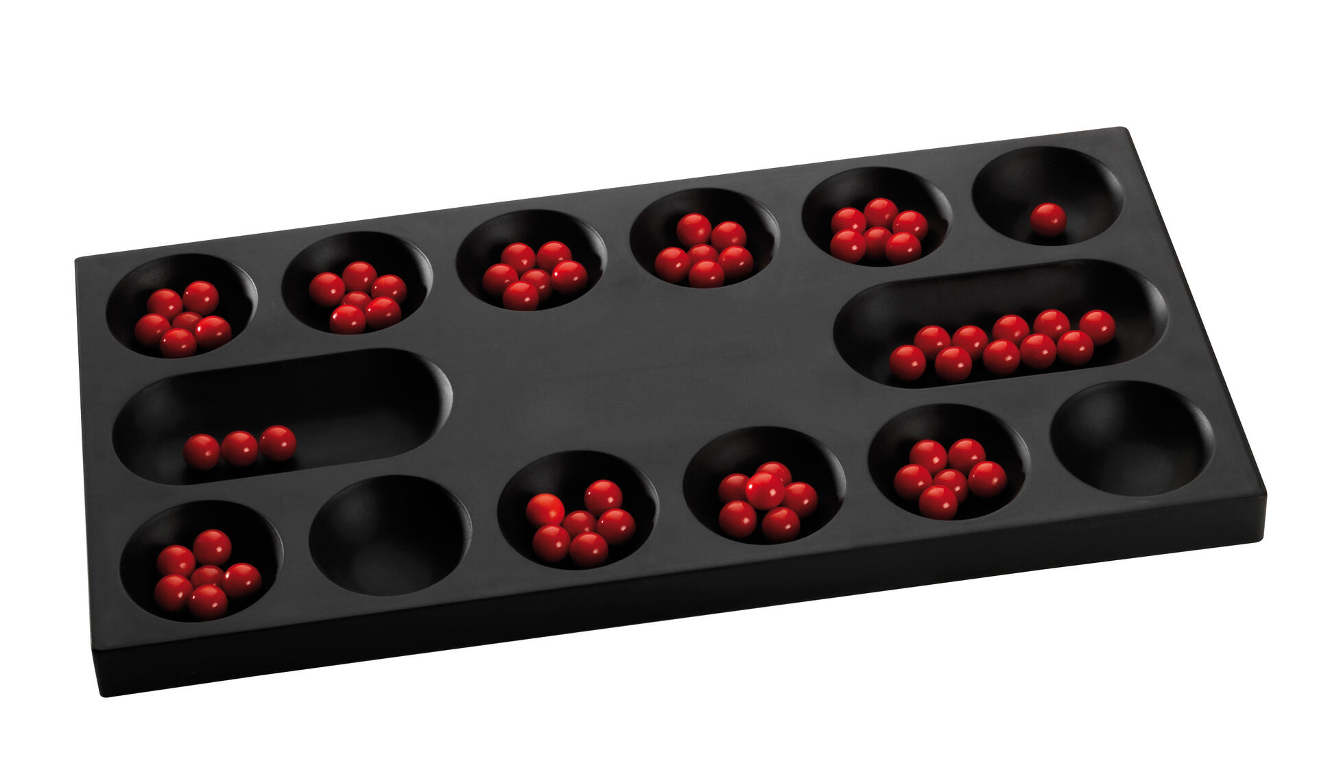 Flytta spelets 72 kulor längs brädet så att så många som möjligt slutar i din egen stora skål. Spelarnas taktiska färdigheter utmanas i detta legendariska brädspel som spelades redan på faraos tid. Speltid ca 20 min. För 2 spelare. Av HIPS. PVC-fri. Från 6 år.