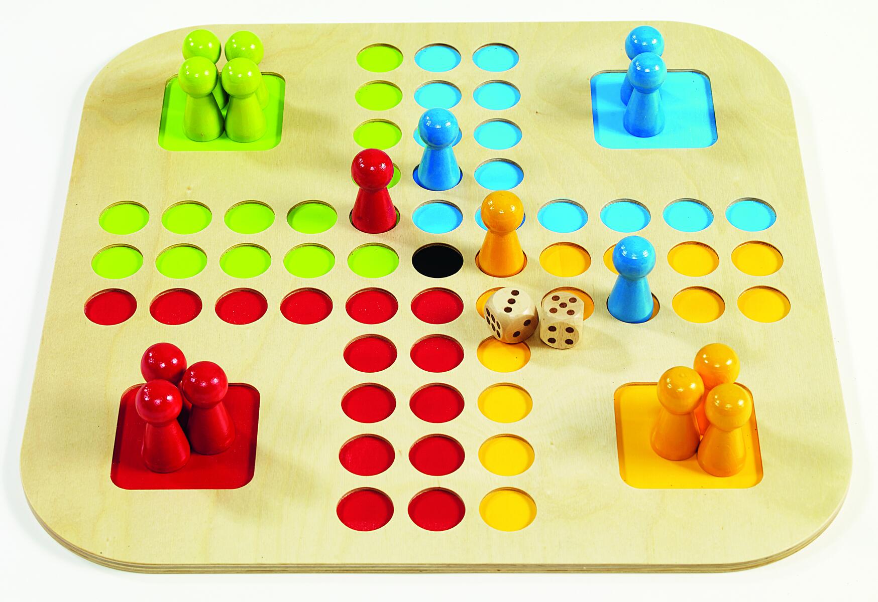Stort spelbräde med försänkta och färgglada spelmarkeringar samt greppvänliga robusta spelpjäser. Spelbrädet är tillverkat av FSC-märkt trä, samt ytbehandlat med hård lack. Speltid ca 20 min. För 2-4 spelare. PVC-fri. Från 4 år.
