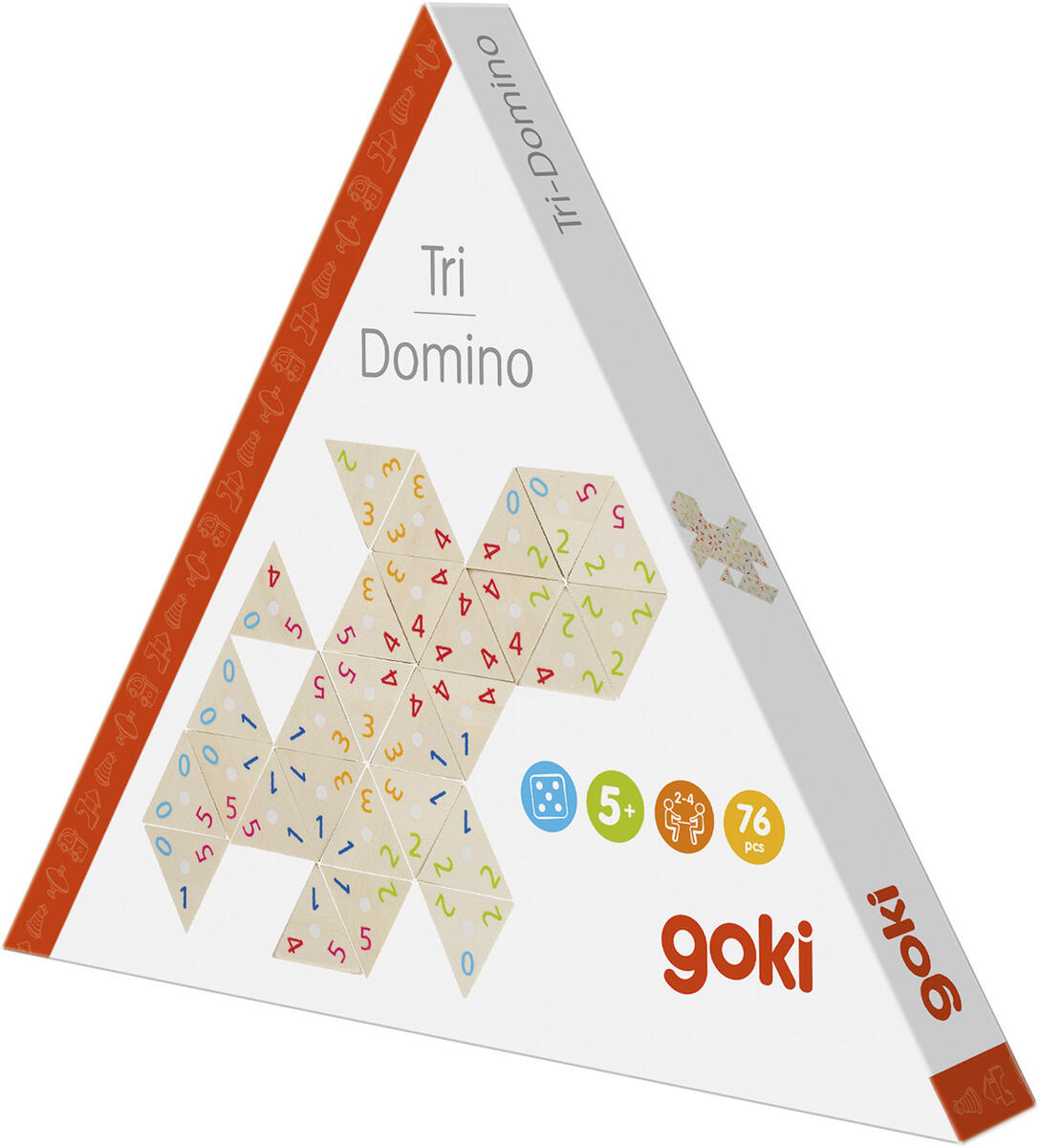 Att spela domino är kul. Tri-Domino är tre gånger så kul! De triangulära plattorna måste läggas på ett sådant sätt att en stor triangel med en 4 eller 5-faldig kantlängd skapas. 2-4 spelare. PVC-fri. Från 5 år.