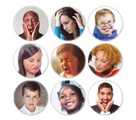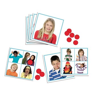 24 bilder med människor som uttrycker olika känslor. Låt barnen beskriva känslan som visas på bilden och diskutera vad som kan ha hänt. Mått: 21x23,5 cm. PVC-fri.