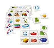 Lotto med 36 bilder av välbekanta vardagsföremål. 6 spelplaner medföljer. Varje spelplan är baserad på ett tema i hemmet: badrum, mat, kök, kläder, leksaker och föremål. Av kartong. PVC-fri. Från 2 år.