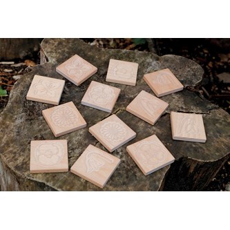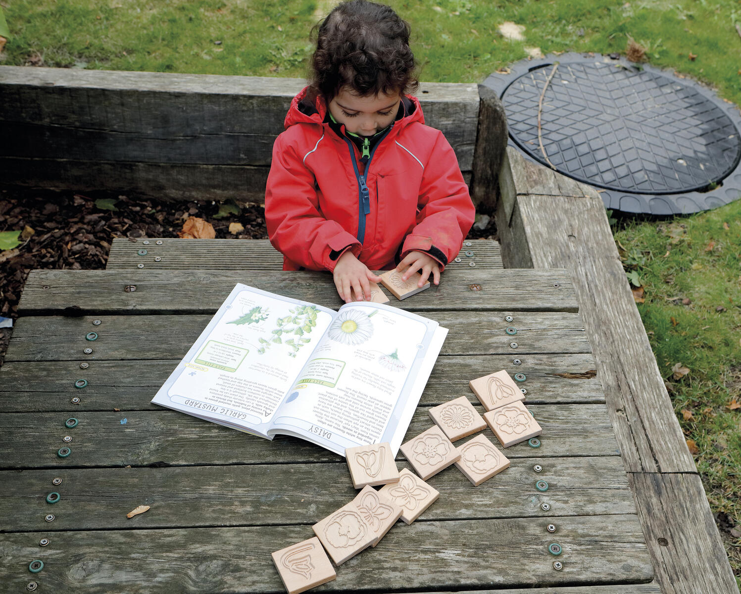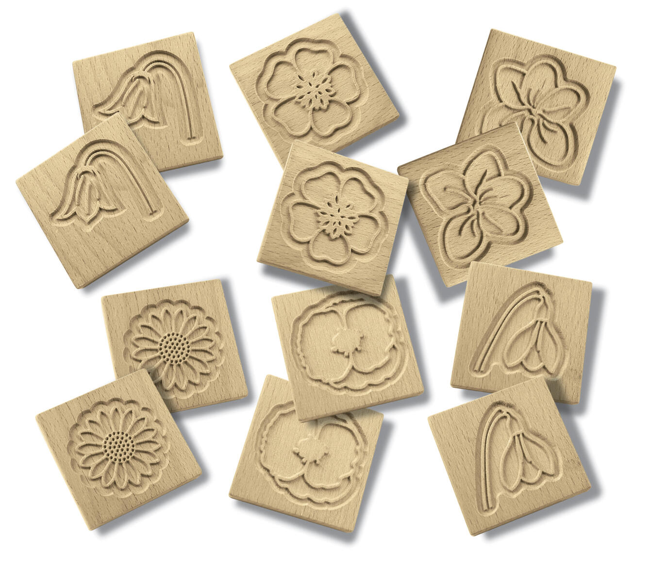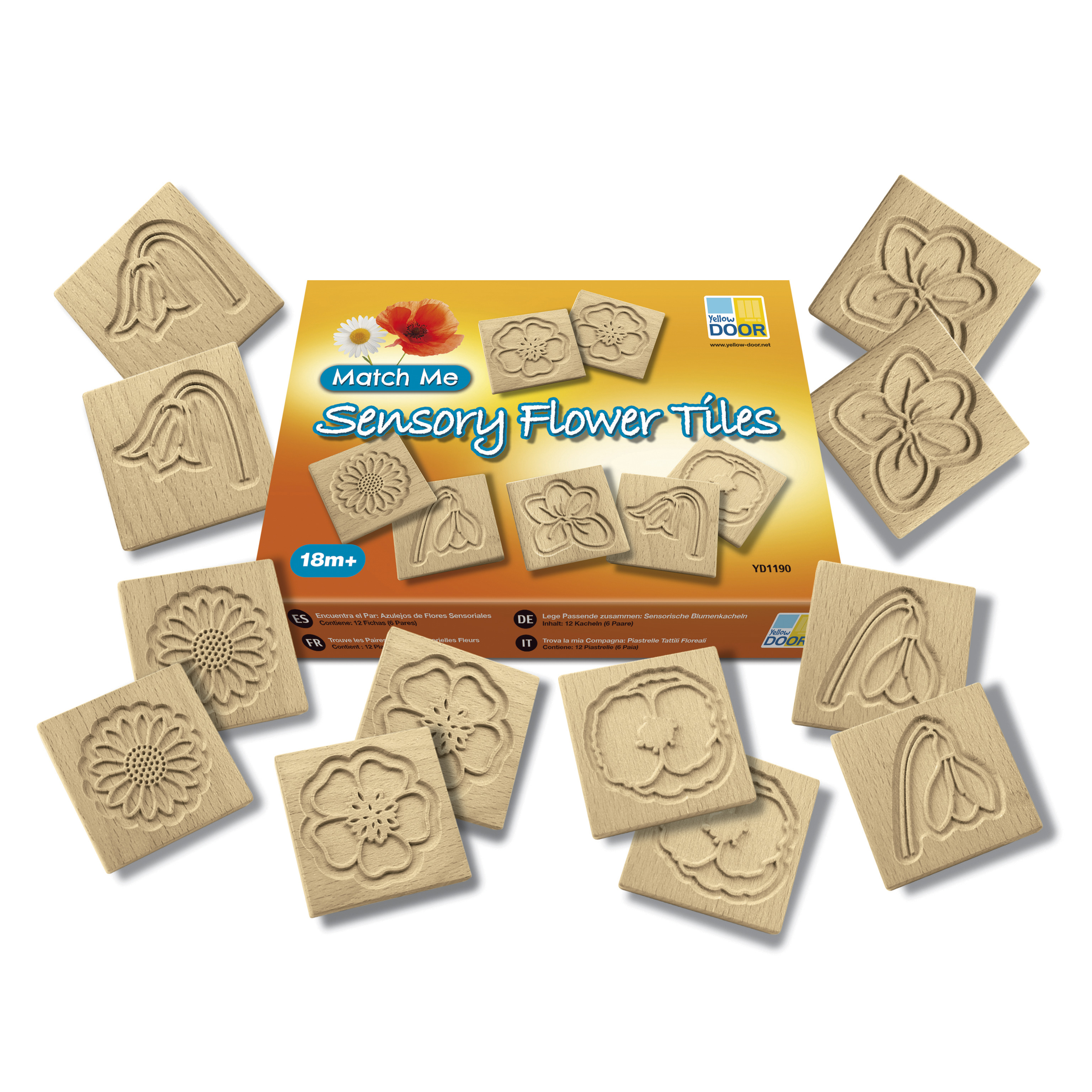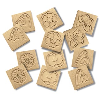 12 st/fp. Träplattor med taktila mönster av olika blommor. Spela memory, diskutera och utveckla språket, skapa mönster inom bild eller ta avtryck för lera. Innehåller sex olika bladpar: blåklocka, smörblomma, tusensköna, vallmo, snödroppe och viol. Mått: 6x6 cm. Av FSC-märkt bokträ. PVC-fri. Från 18 månader.