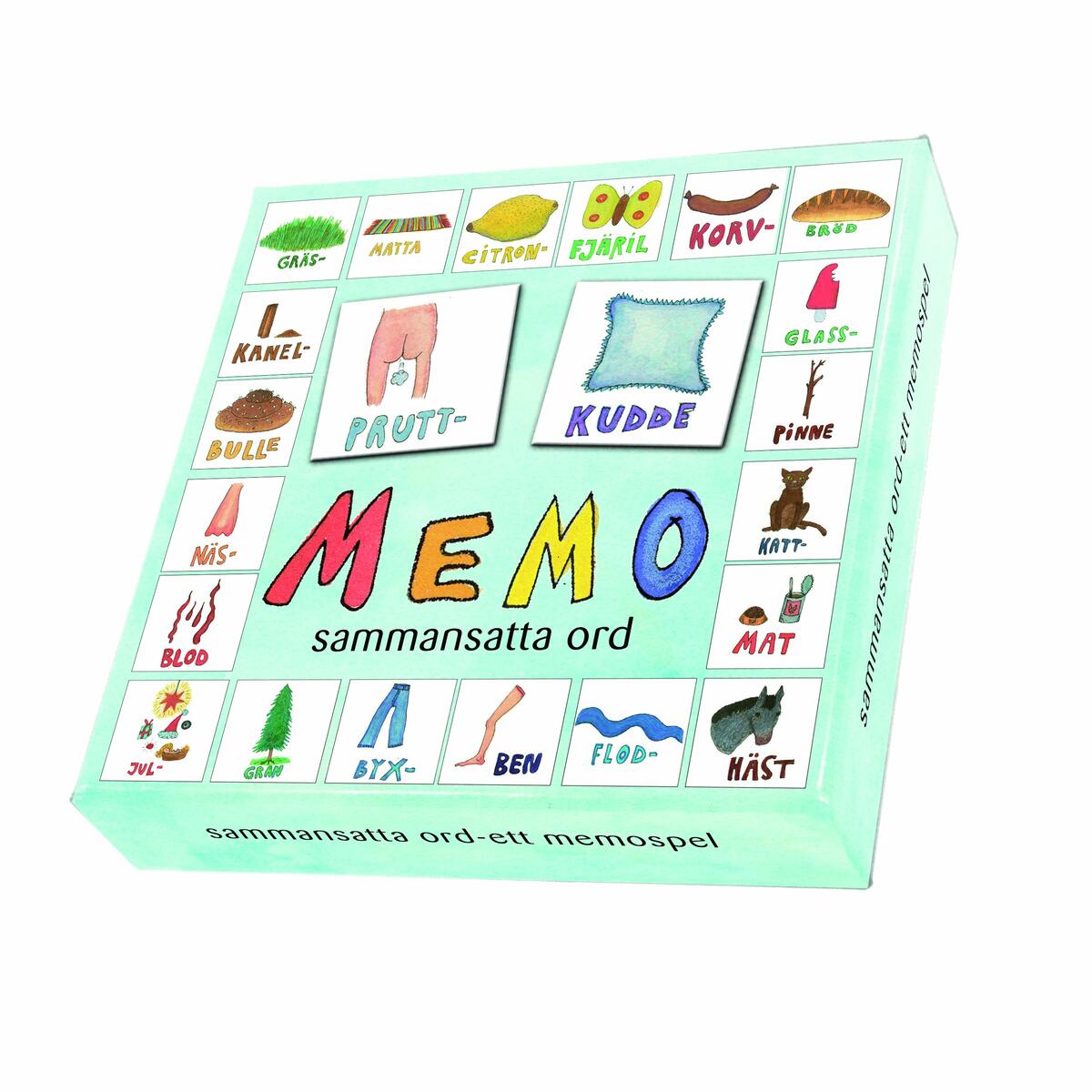 42 spelbrickor. En rolig variant av memo där man tränar på att få ihop olika sammansatta ord där början finns på ena kortet och slutet finns på det andra. Det kan bli knasiga ord och många skratt innan rätt bricka är funnen. Av kraftig kartong. PVC-fri. Från 5 år.
