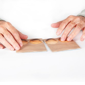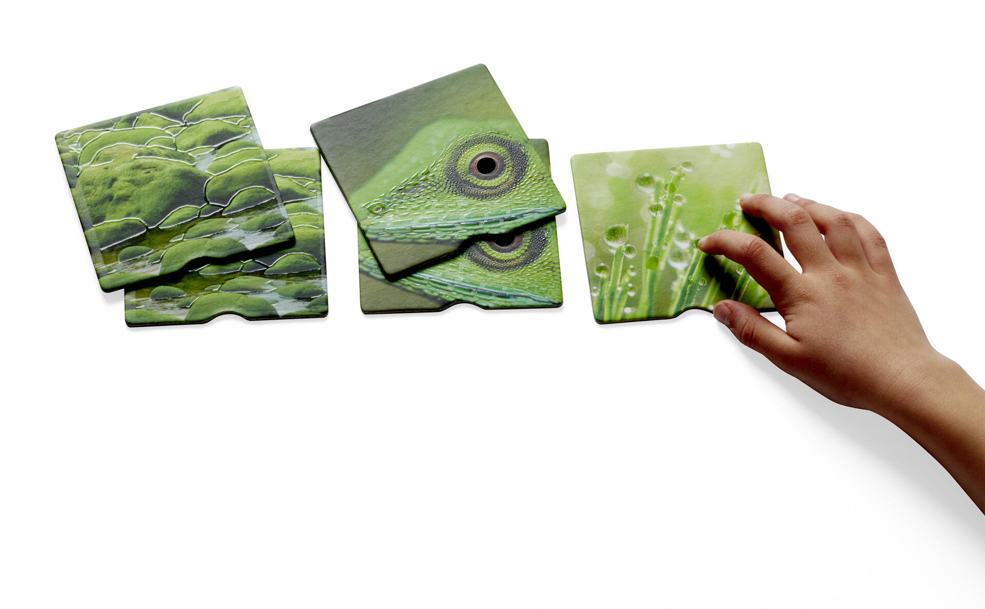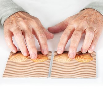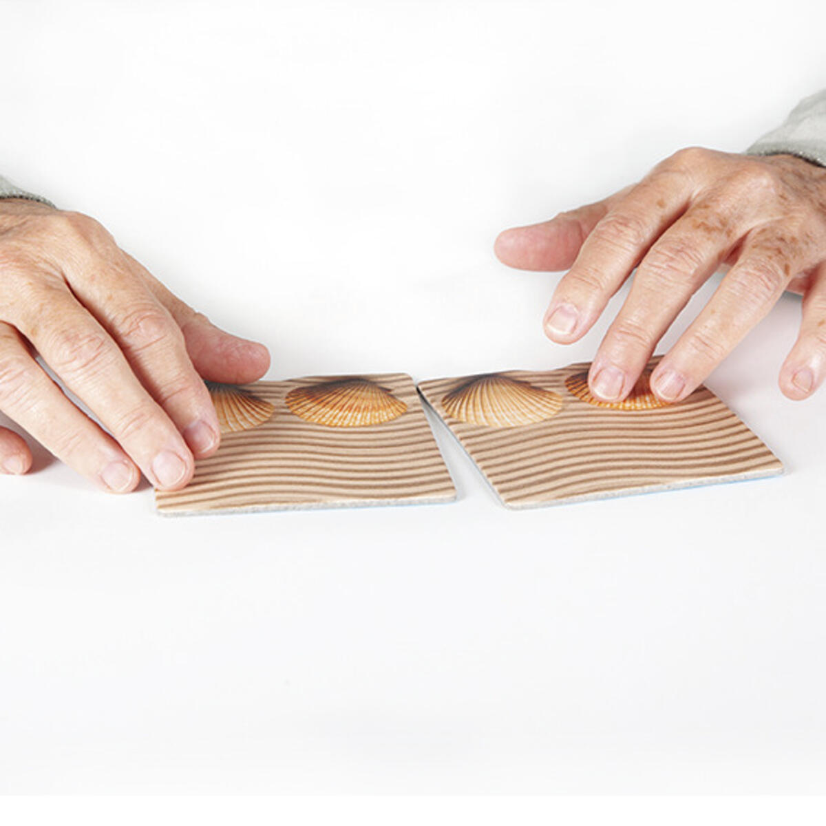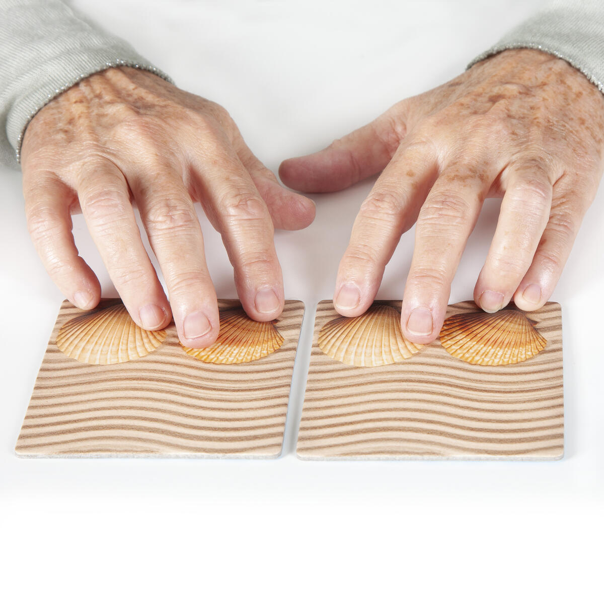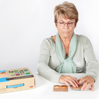 34 kort. Ett memory där känseln är viktigast. Prova att spela med förtäckta ögon. Illustrationerna på korten är också lättare att se för personer med synnedsättning. Mått:9x9 cm. Ingående råvara FSC-märkt. PVC-fri. Från 3 år.