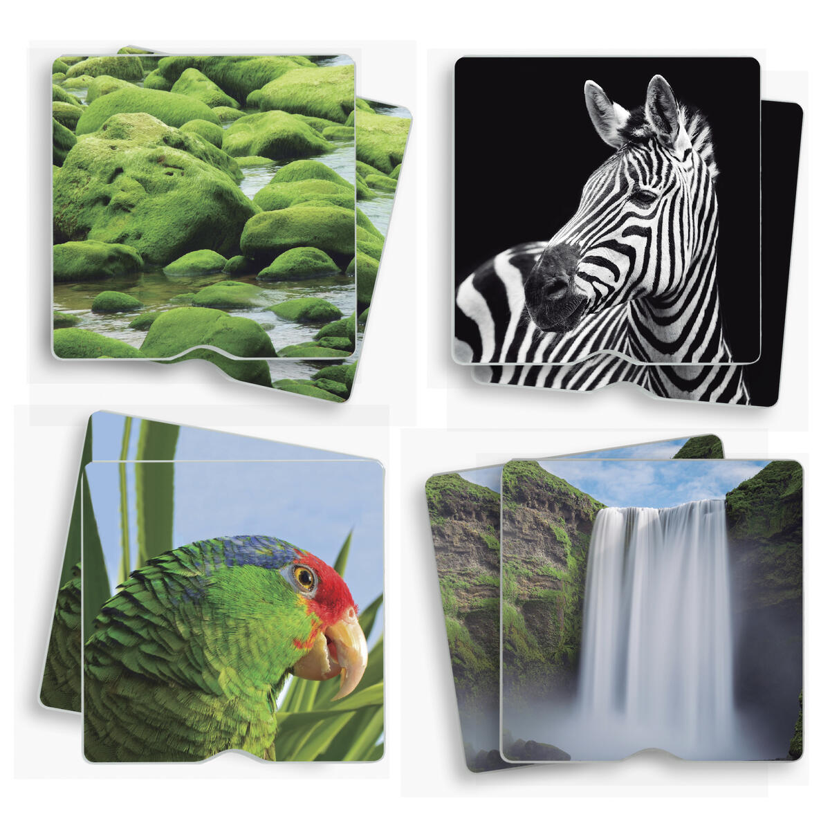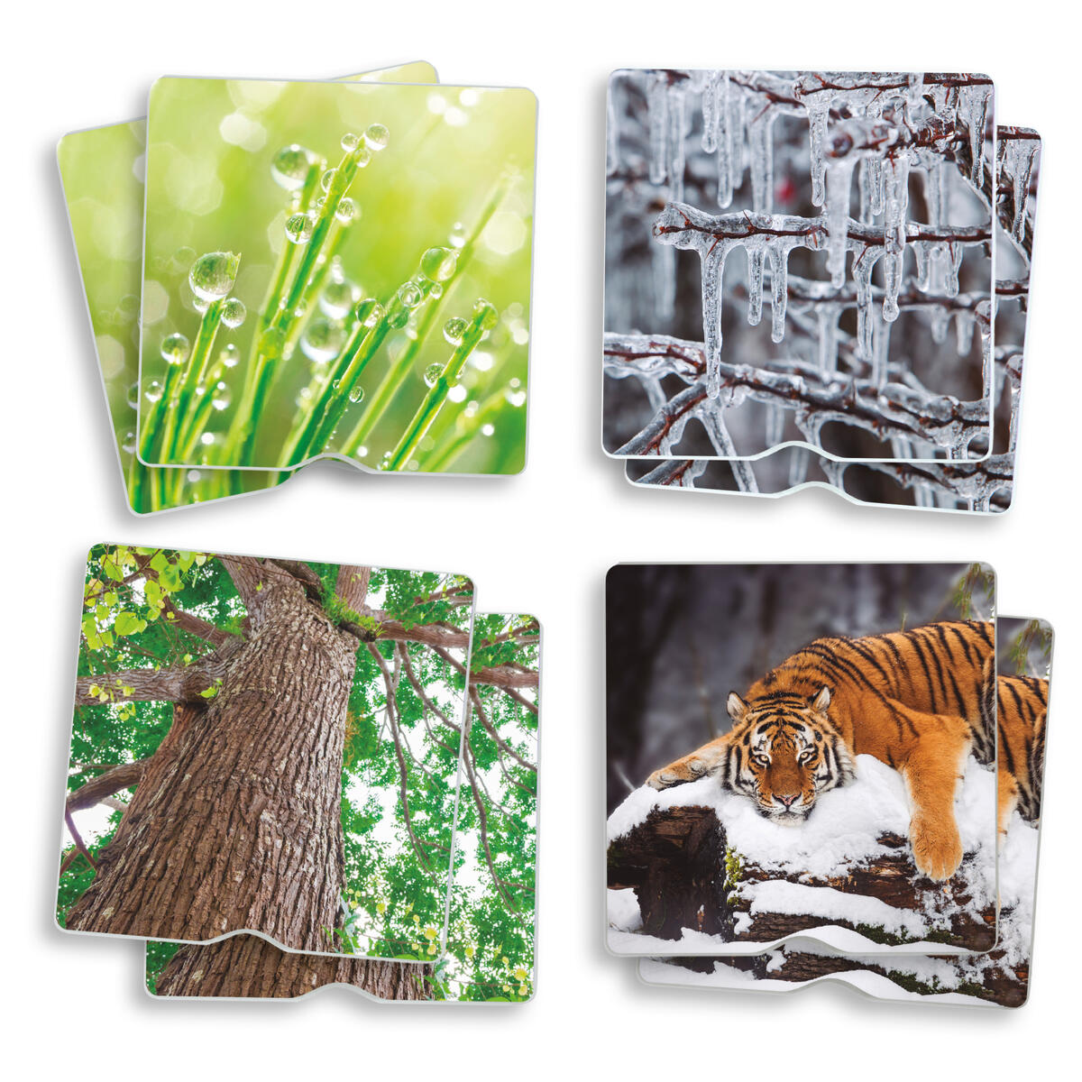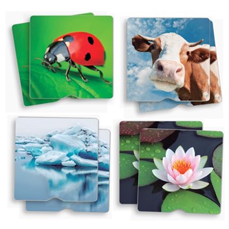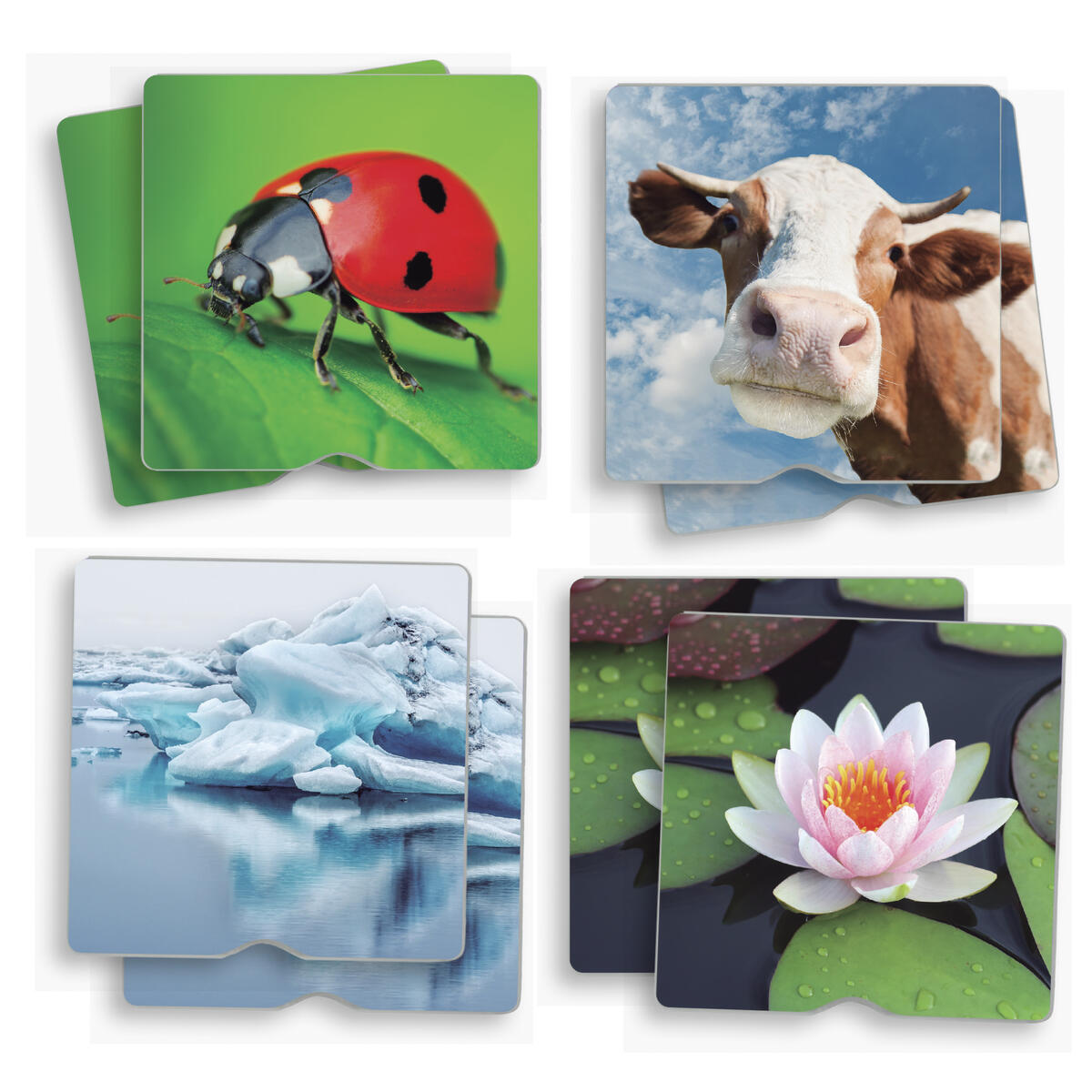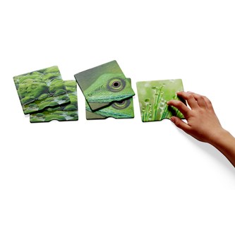 Memo innehållande 36 olika brickor som ska paras ihop. Bilder på figurer som du finner i naturen. Av kartong. PVC-fri. Från 3 år.