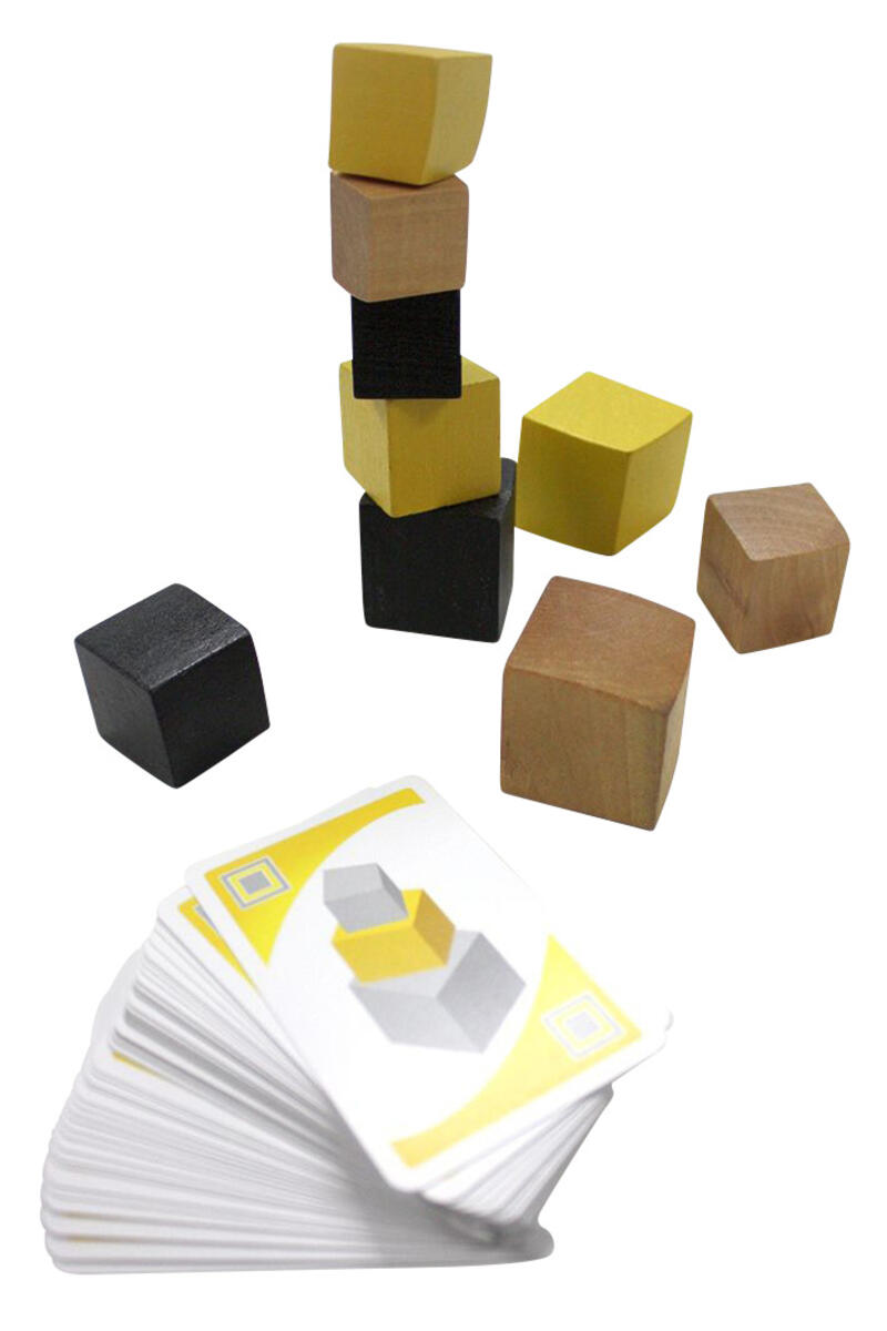 Stapla klossar på varandra utan att få tornet att ramla. Den första spelaren som gör slut på sina klossar eller placerar den nionde klossen på tornet vinner! Klassiskt och stilrent spel som håller länge. Kort som anger vilken kloss du ska använda. För 2-6 spelare. Ca. 20 min speltid. Från 8 år.