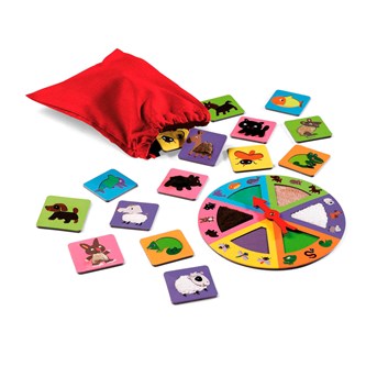 Här gäller det att vara koncentrerad och noggrann. Sätt spinn på pilen, stoppa ner handen i påsen och känn efter vilket kort som matchar vad pilen visar på rouletten. Den som får flest kort vinner. Ett spel där man tränar det taktila sinnet. För 1-4 spelare. PVC-fri. Från 3 år.