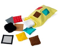 Färgglada brickor med tydlig taktil struktur ger en spännande utmaning i att hitta rätt bit till sitt kort. Försök hitta två matchande bitar i påsen, men bara genom att känna. Förklara hur ytan känns och utveckla språket. Innehåller 20 bitar med 5 olika ytor och 10 aktivitetskort. Mått: ca 5 cm. PVC-fri.