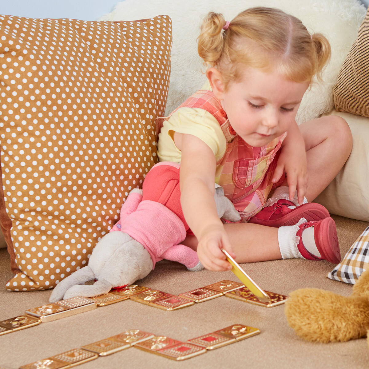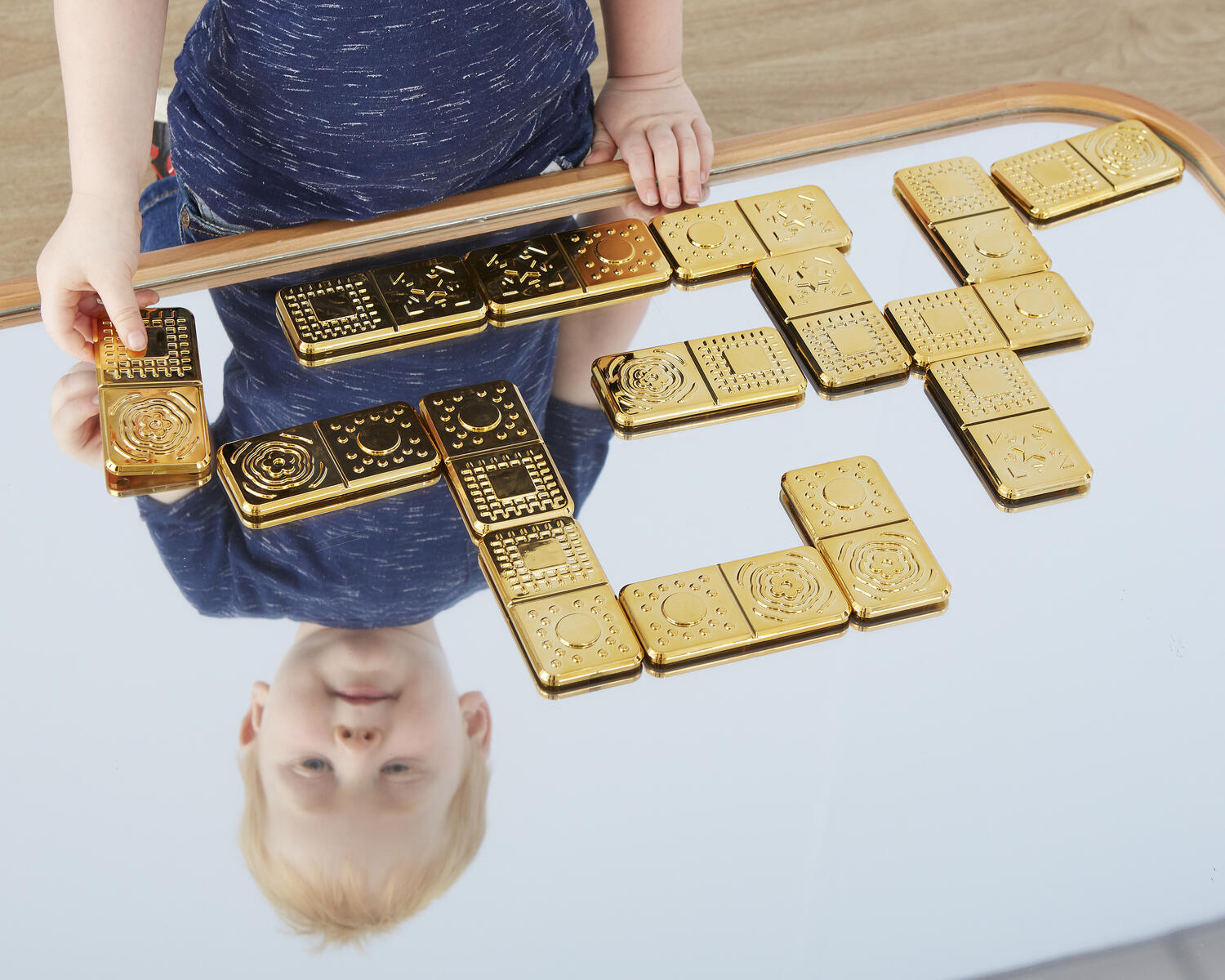 15 st. Matcha mönstren på brickorna och skapa en glänsande väg. Används som ett vanligt domino för att matcha och sortera. Prickarna går även att känna på för en taktil upplevelse. Mått: 5x10 cm. Material: ABS. PVC-fri. Från 10 månader.