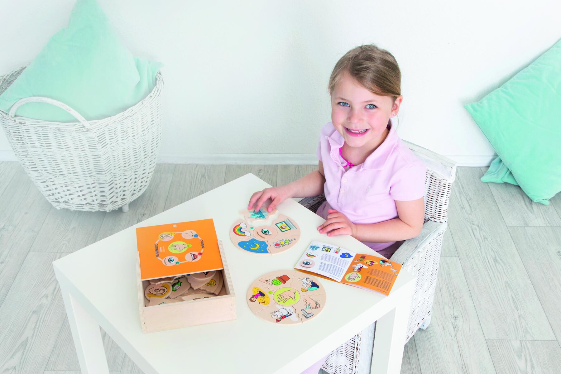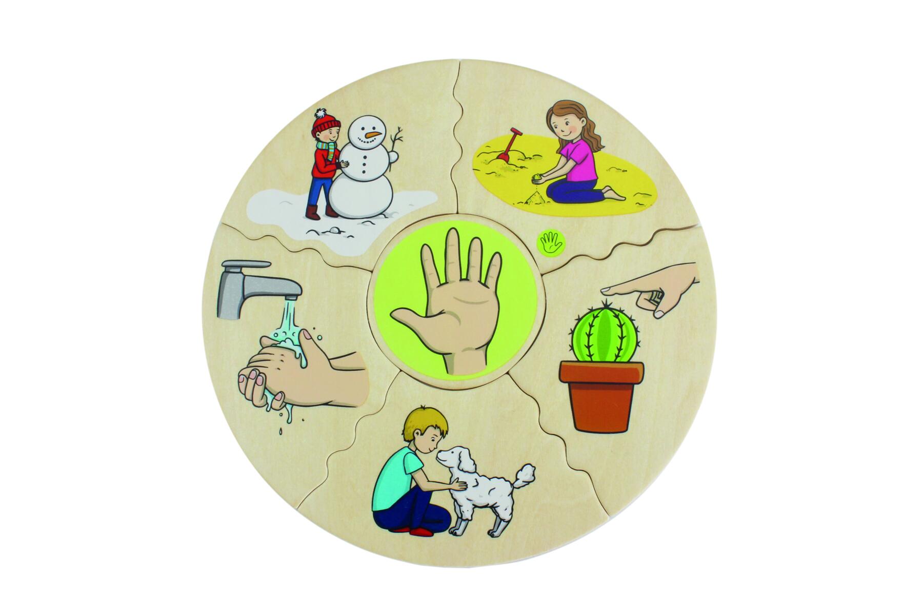 Kasta tärningen och matcha olika vardagssituationer med det sinne som visar sig på tärningen. Ger språkträning och förståelse av de olika sinnena. Innehåller 50 kort (9x9 cm) och en tärning (3,5 cm). PVC-fri. Från 3 år.