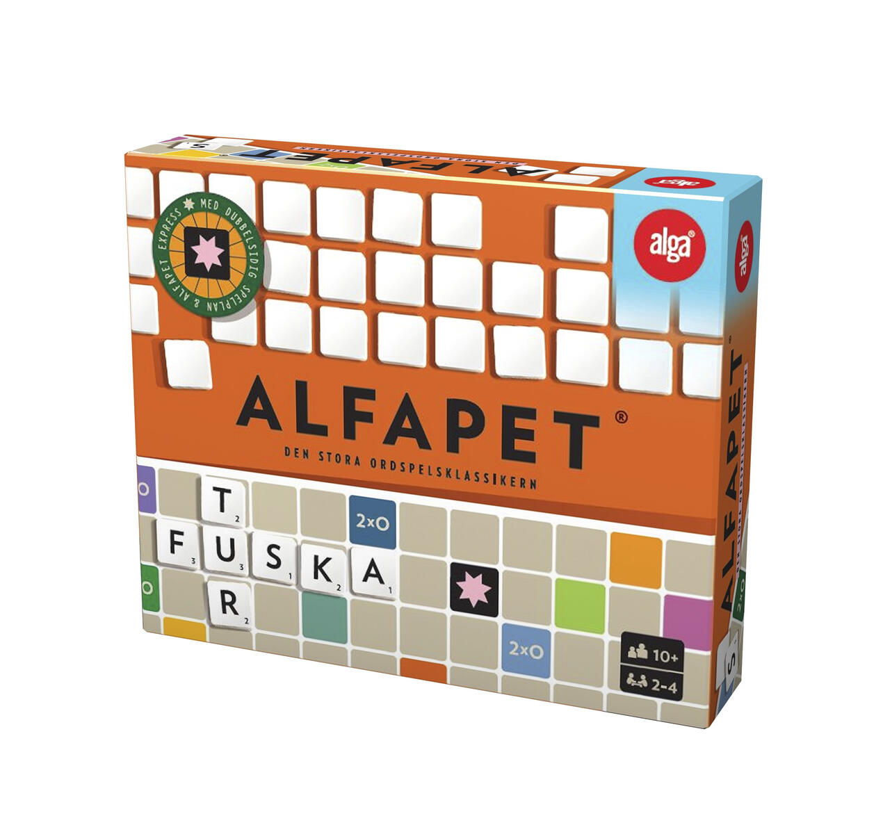 En ordspelsklassiker som innehåller spelvariationer och utmaningar. Tränar ordbildning och stavning. För 2-4 spelare. Speltid ca 60 min. Spelregler för Alfapet hittar du som PDF under dokument och filer. PVC-fri. Från 10 år.