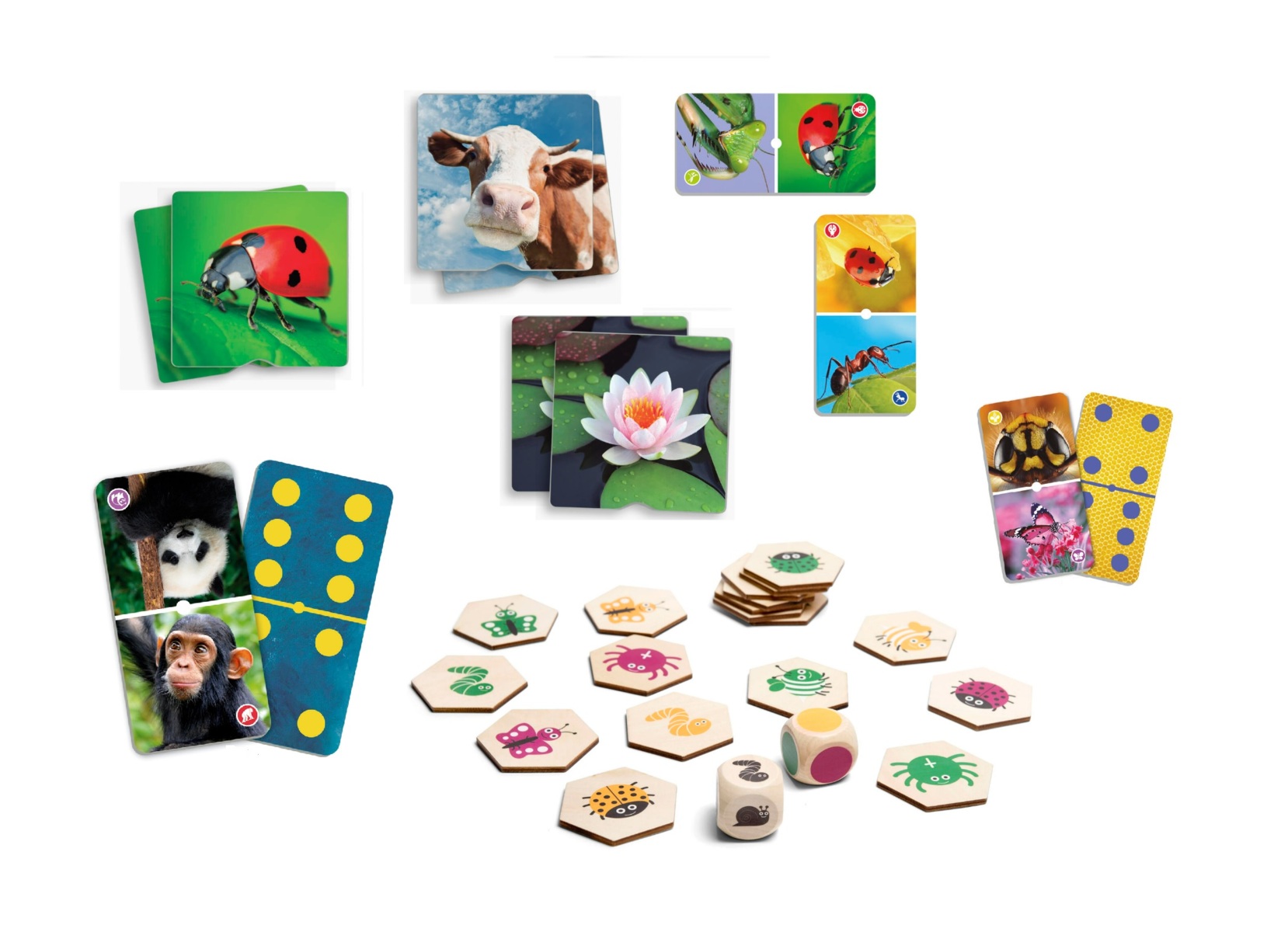 4 st/fp. Spelpaket där djur och natur är i fokus. Spelen väcker intresse och ger kunskap om planetens mångfald. En blandning av spel om bl.a. insekters liv, utrotningshotade djurarter, djurs utseende och ett spel där känslesinnet tränas. Innehåller Domino Insekter 135943, Domino Våra utrotningshotade djur 135945, Sök & finn insekter 137690, Taktilt memo naturen 58230.