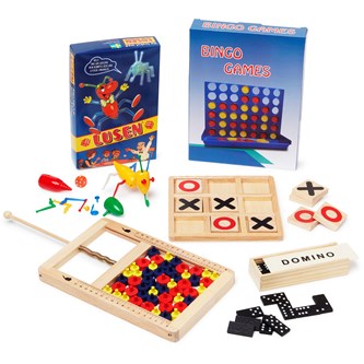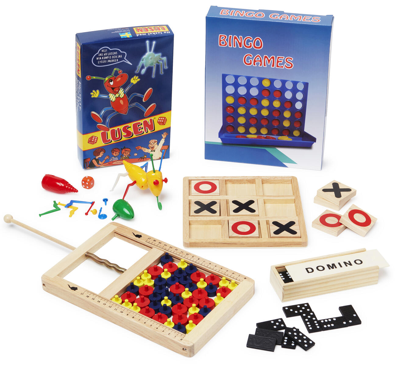 5 st/fp. Ett spelpaket med 5 klassiska spel som tilltalar de flesta åldersgrupper. Innehåller Luffarschack 16163, Fyra i rad 10585, Domino 16020, Råttfällan 16721, Lusen 18004. Rekommenderade från 3 år.
