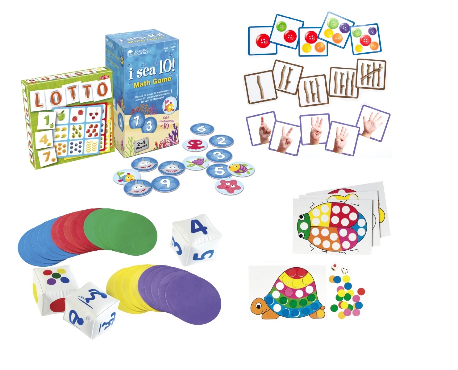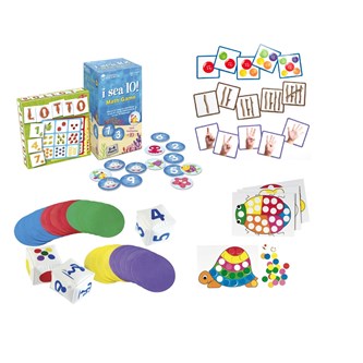5 st/fp. Ett spelpaket som stimulerar matematiskt och logiskt tänkande. Innehåller 130040 Lotto siffror & frukter, 124336 Memo tiokompisar, 52106 Klara färdiga gå!, 16522 1, 2, 3 Jag kan räkna, 144454 Mer eller mindre. Rekommenderade från 3 år.