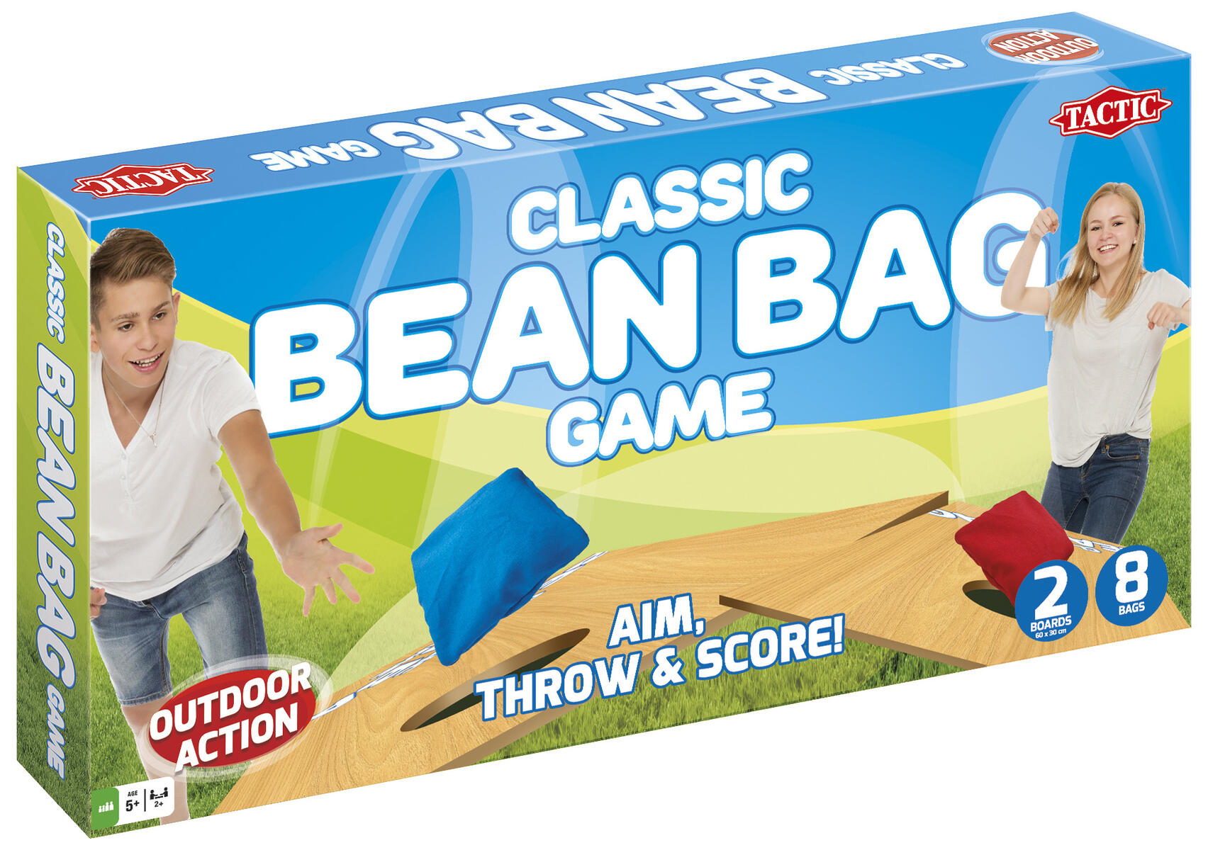 Klassiskt spel där det gäller att pricka ett hål i en bräda med ärtpåsar, även kallat corn hole. Två brädor och åtta ärtpåsar ingår. Kasta ärtpåsarna på brädan och försök få 21 poäng. Enkla spelregler gör att spelare i alla åldrar kan vara med. Spelet kan spelas var som helst, bara du har ett plant underlag. Brädorna är 60x30 cm. För 2 spelare. Av MDF, PS och nylon. Från 3 år.
