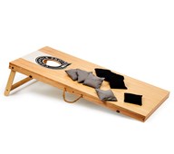 Cornhole i officiell tävlingsstorlek. Innehåller en spelplatta med mått 120x60 cm, 8 kastpåsar i två färger samt förvaringsväska. Spelbrädan är tillverkad i FSC-certifierad plywood med gummiöverdrag och påsarna på 450 gram vardera är fyllda med kalk.