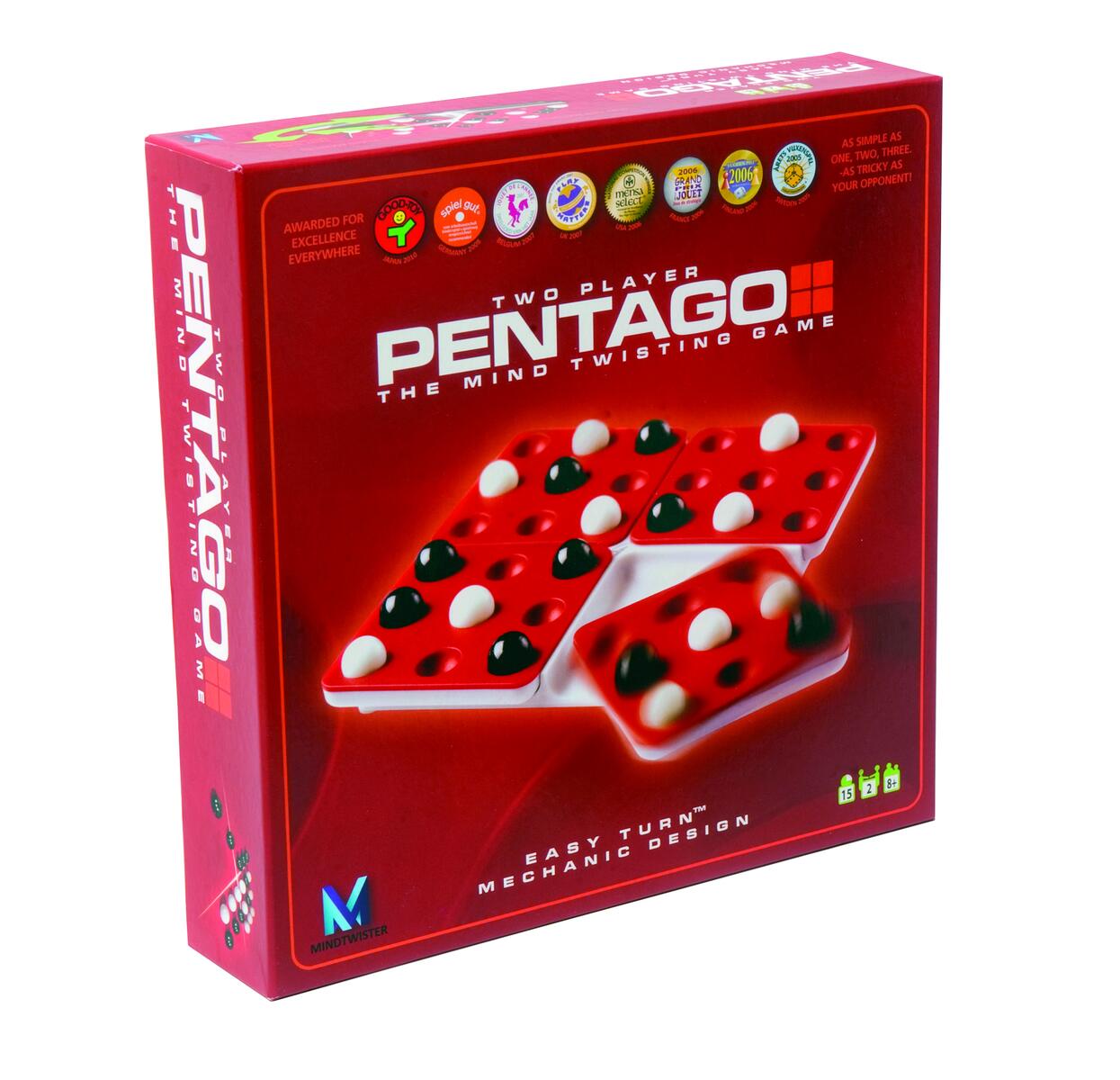 Ett roligt och snabbt strategispel. Den som först får 5 i rad vinner, men efter varje lagd kula måste man vrida på en av spelplanens brickor. När spelplanen ständigt förändras blir det genast extra klurigt och en större utmaning än man först kan tro. För 2 spelare. Speltid ca 15 minuter. PVC-fri. Från 6 år.