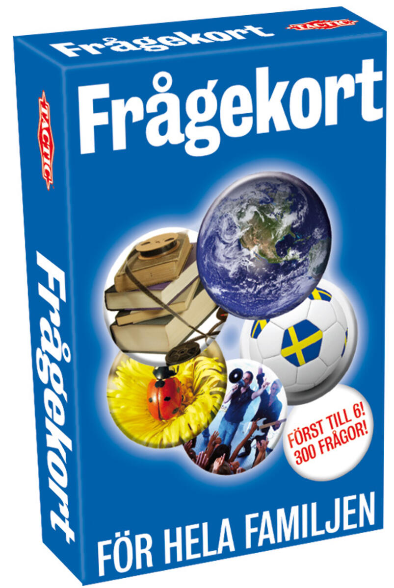Ett roligt kortspel för hela familjen. 50 kort med totalt 300 frågor. Välj en av frågorna- svarar du rätt så får du behålla kortet. Först till 6 kort vinner. För 2 + spelare. Från 8 år. PVC-fri. Av kartong.