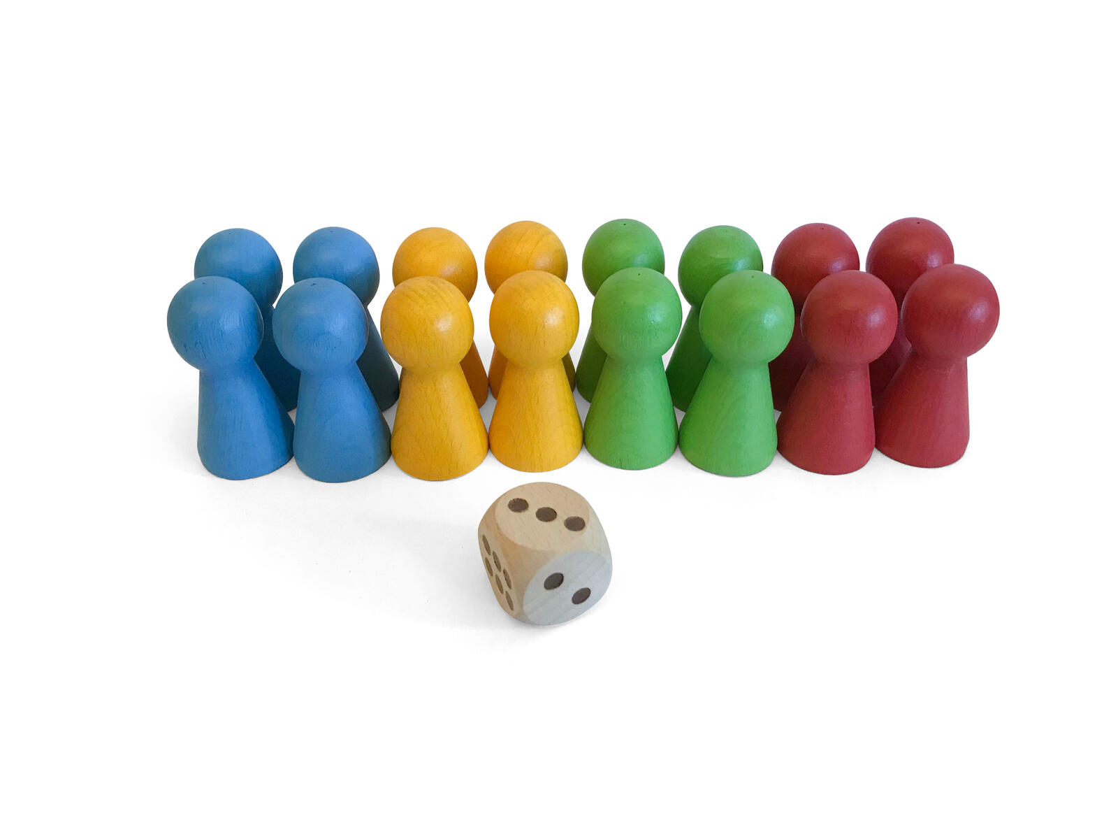 Ett klassiskt fiaspel av ABS, med nedsänkta hål så att figurerna står stilla. Mått spelplan 30x30 cm, spelpjäs höjd 4,5 cm, tärning ca 1,7 cm. PVC-fri. Från 3 år.