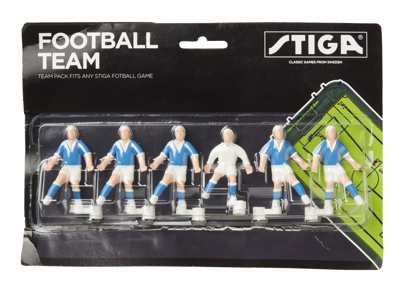 Ett klassiskt fotbollsspel från Stiga. Utmana dina vänner och vinn VM! Neutralt spelande lag i blått och vitt. För 2 spelare. Mått: 94x50 cm. PVC-fri. Från 3 år.
