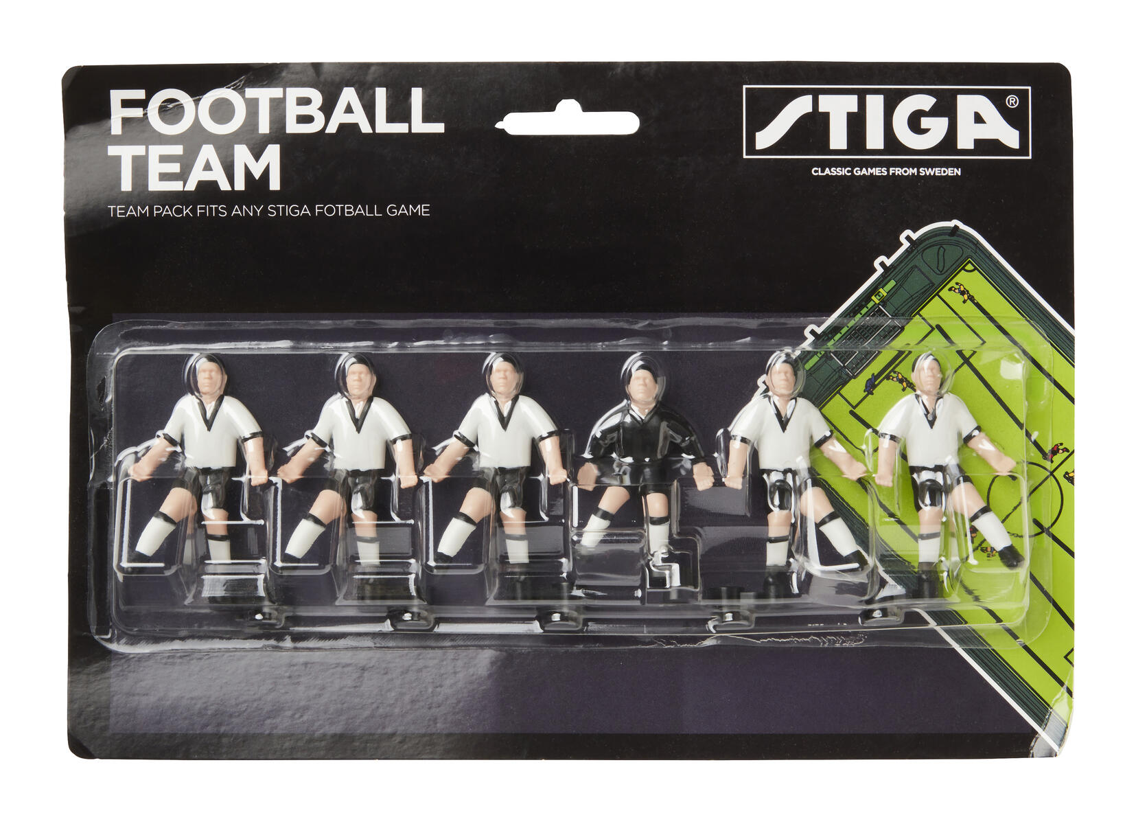Ett klassiskt fotbollsspel från Stiga. Utmana dina vänner och vinn VM! Neutralt spelande lag i blått och vitt. För 2 spelare. Mått: 94x50 cm. PVC-fri. Från 3 år.