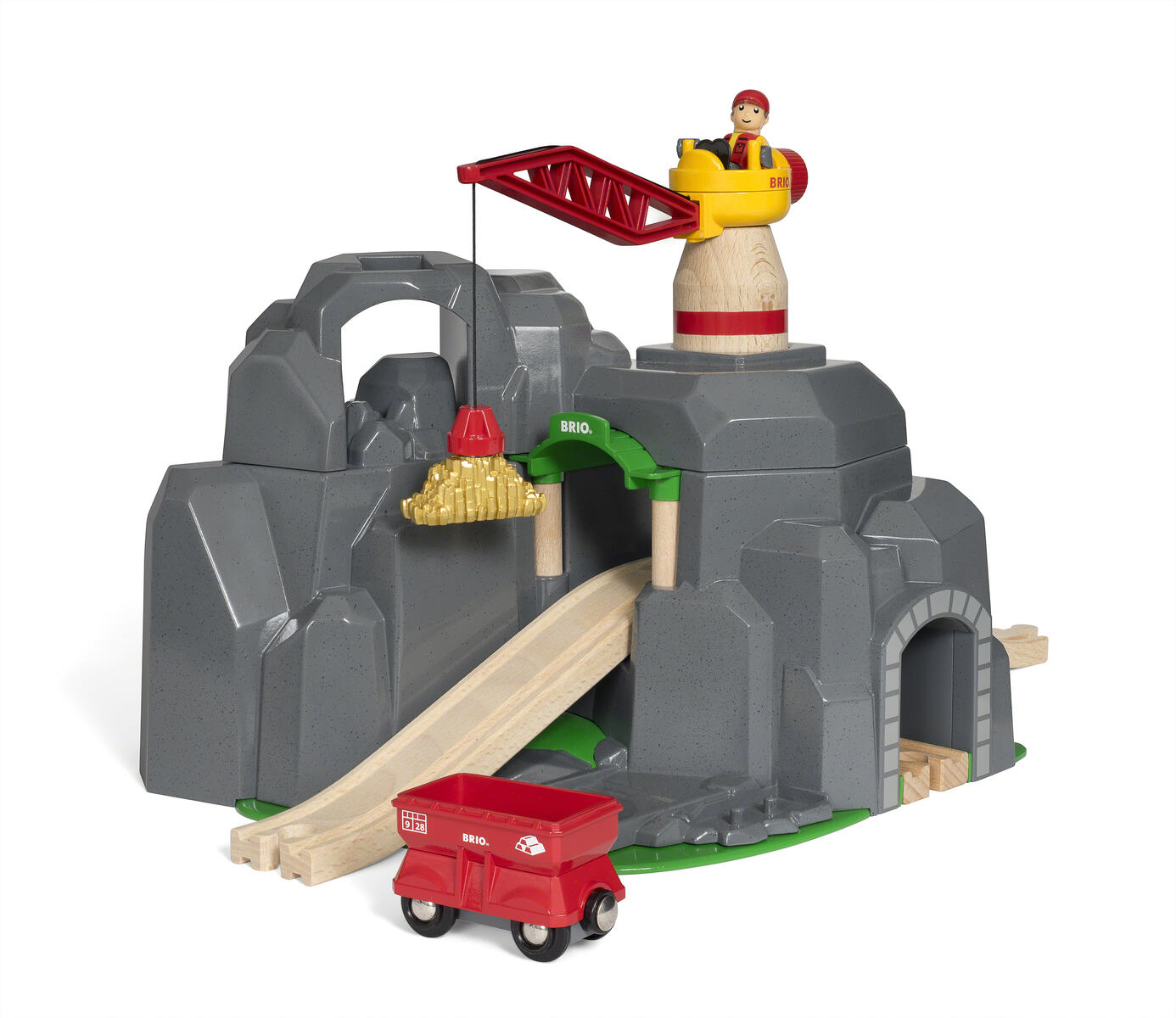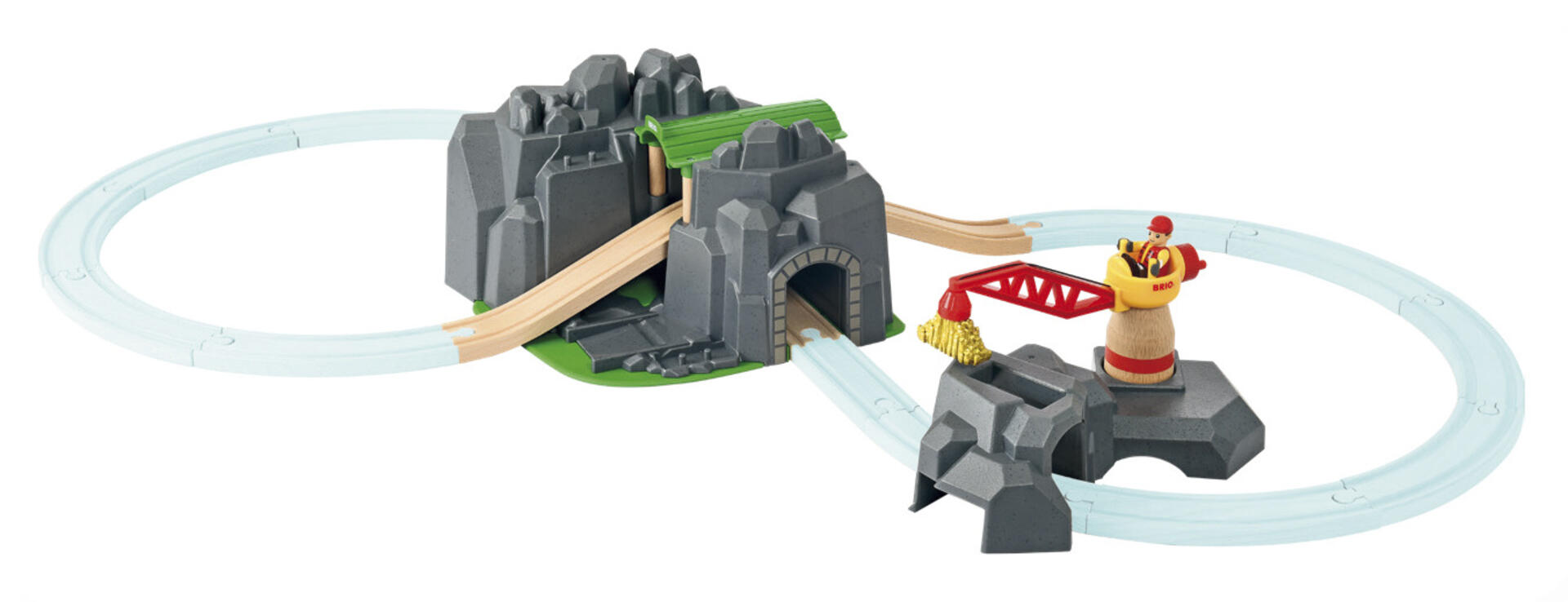 Varje hörn av lyftkranen och tunneln erbjuder något nytt att upptäcka. En flervåningstunnel med stor lyftkran på toppen som aktiverar fyra olika ljud när ett tåg åker genom berget. Dessutom kan övre delen av bergstoppen lyftas av och placeras nere på järnvägen för dubbel funktionalitet. 2 st AA-batterier krävs, ingår ej. Av FSC-märkt bokträ, vattenbaserad färg och ABS. Mått: 45x27x24 cm. PVC-fri. Från 3 år.