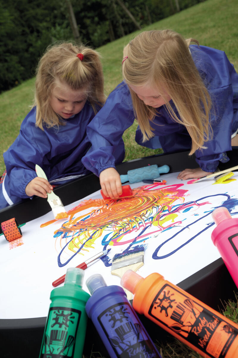 Ett spännande lekbord för kreativa barn. Lekbordets användningsområden kan varieras på många olika sätt. Med hjälp av lekmattan med skogsmotiv kan barnen skapa en värld av material från sin egen omvärld, t.ex. grus, pinnar, gräs och löv. Tillsätt några lekdjur och den kreativa leken är i full gång. Du kan också fylla hela lekbordet med sand eller vatten. I setet ingår lekbord, lekmatta skog och en ställning av lackerat stål. Delarna kan också köpas separat. Tillverkat av 100% återvunnen plast. PVC-fri.