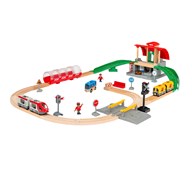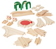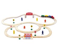 Komplett järnvägsset bestående av 50 delar. Kan även användas som ett bra kompletteringsset till tågbana. Innehåller 36 skenor, 4 tåg och 10 olika tillbehör till järnvägsleken. Av FSC-märkt trä. Passar med andra fabrikat. PVC-fri. Från 3 år.