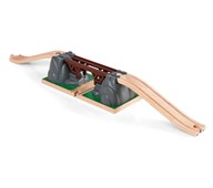 En rolig och spännande äventyrsbro för unga lokförare. Brons mittdel faller isär när man trycker på knappen, vilket kan bli nog så problematiskt för tågtrafiken både över och under bron. Med en spårförsedd basplatta av trä och 2 uppfartsskenor. Av FSC-märkt bokträ och vattenbaserad färg. PVC-fri.Från 3 år.