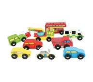 9 delar. Innehåller färgglada bilar, utryckningsfordon, en buss och en bärgningsbil. Bärgningsbilen har en magnetisk vinsch som gör att den kan bogsera en kompis i behov. Mått: L7xB2,5xH4 cm. Av FSC-märkt trä. PVC-fri. Från 3 år.