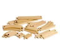 108 delar. Byggklossar för att kombinera plastklossar och trätågbanor. Barnens kreativitet utmanas genom att bygga på höjden. Ger en plan och stabil tågbana, även om bygget är avancerat. Innehåller 108 järnvägskopplingar. 60 baskontakter, 16 raka kopplingar, 16 ankarkontakter, 8 dubbla flikar, 4 dubbla kontakter och 2 korsningar. Byggklossar och träskenor medföljer inte. Av PLA-plast. Handtvättas. PVC-fri. Från 3 år.