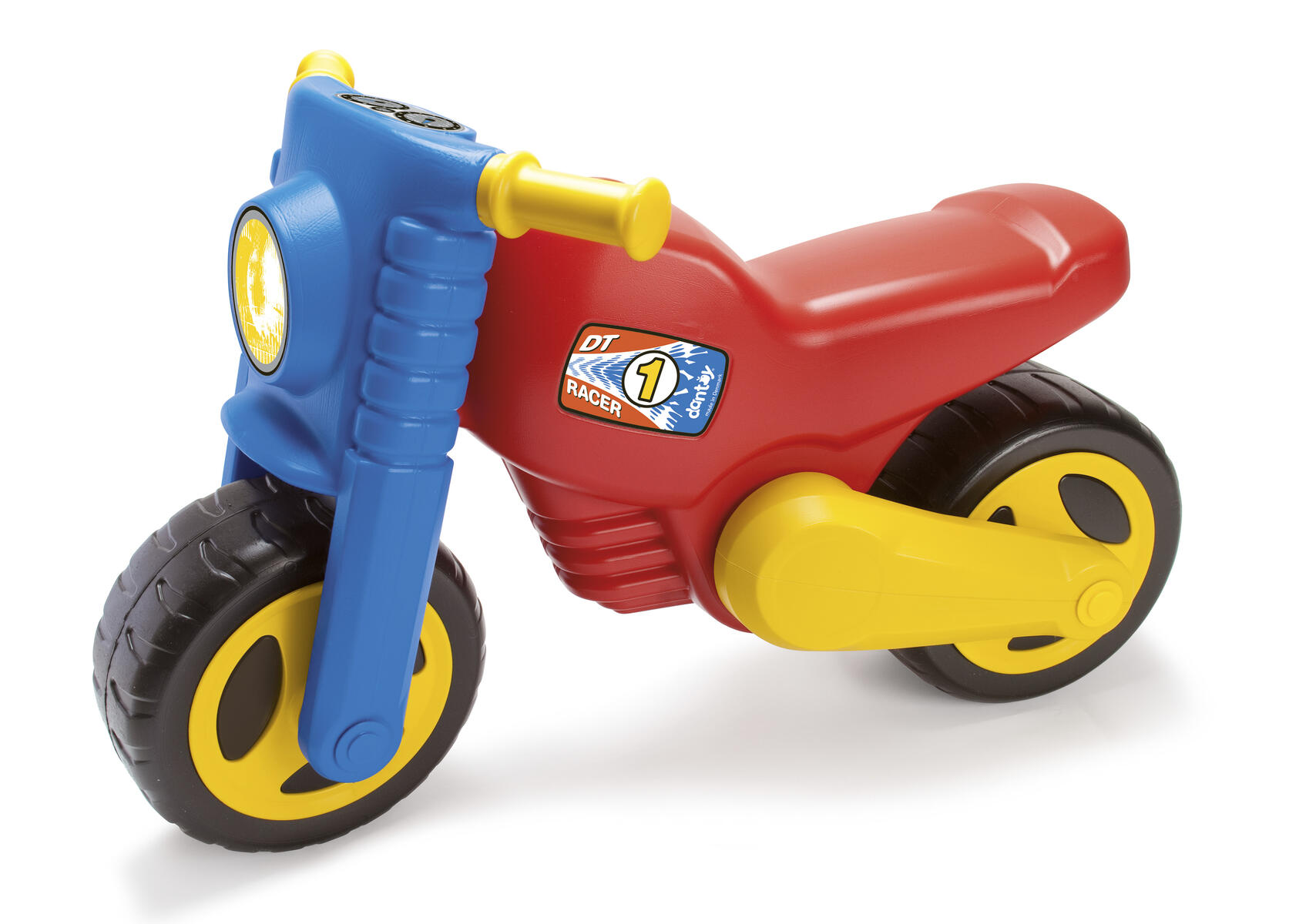 Racercykel med två breda hjul för den lilla cyklisten. Balans och koordination tränas när barnen går eller springer med cykeln. Maxvikt 50 kg. Kan användas både inomhus och utomhus. Mått: 72x46x38 cm. Av PE. Svanenmärkt, licensnummer 50950001. PVC-fri. Från 3 år.