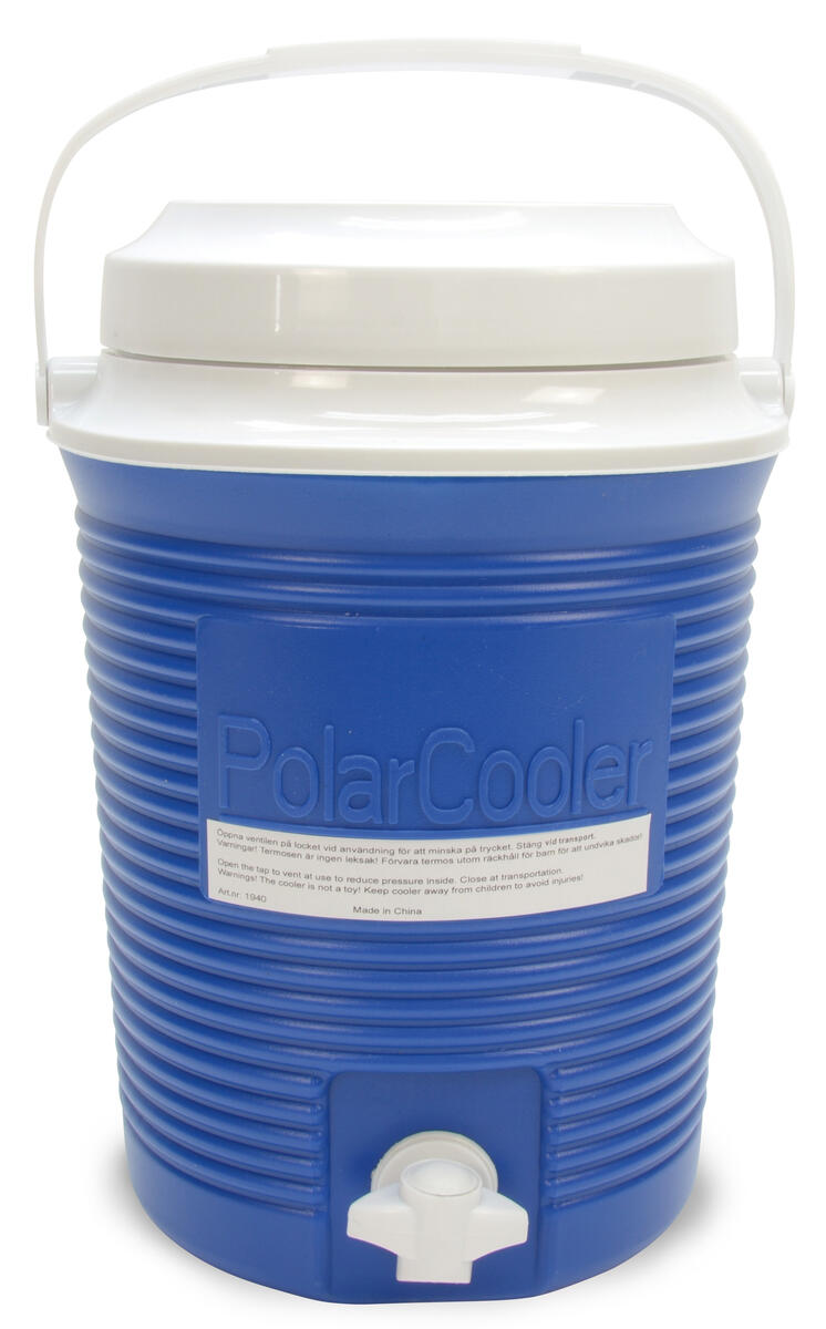 Praktisk förvaring av t.ex. dricksvatten som man vill ha kylt för uteverksamheten. Kan även användas för varma drycker. Lätt att rengöra. Rymmer 7,5 liter. Mått: ø 24 cm, höjd 33 cm. Av PP, PU och PE.
