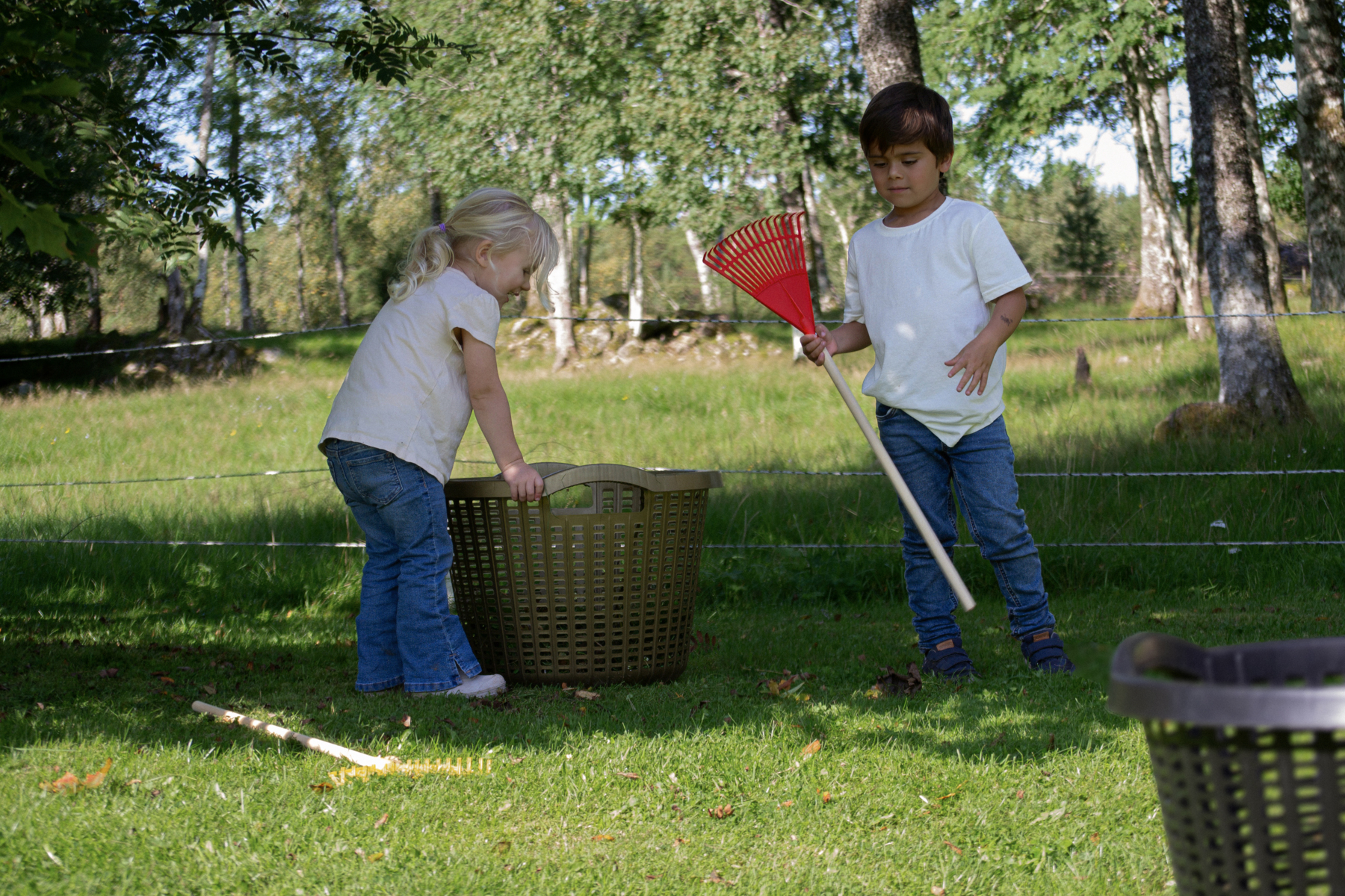 1 st/fp. Lövräfsa med träskaft. Blandade färger. Tål frost. Längd 80 cm. Av PP. PVC-fri. Från 1 år.