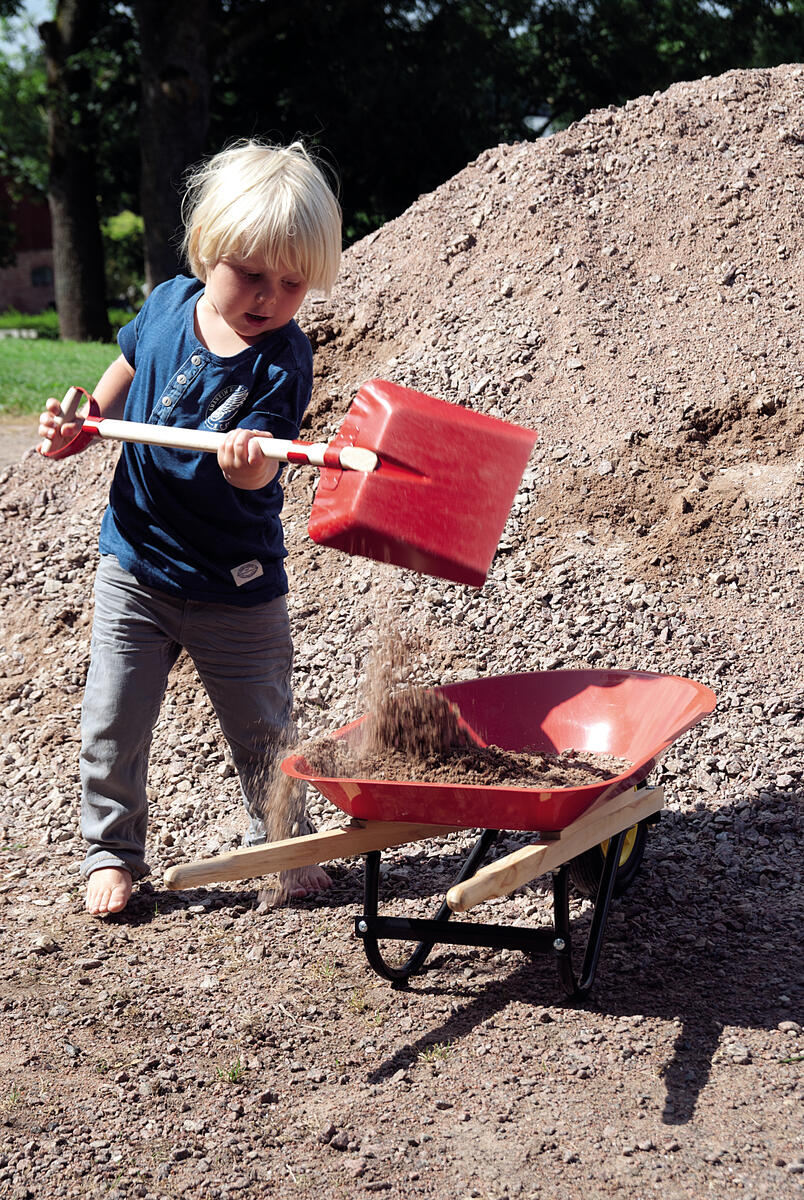 Skyffel med metallhandtag och metall i framkanten. Mått: Bredd 45 cm, skalmens längd 83 cm. Av PE. PVC-fri. Från 2 år.