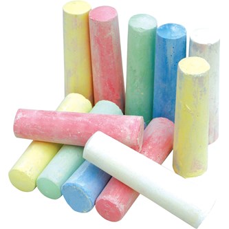 20 st/fp. Gatukritor av gips för utomhusbruk i blandade färger. För målning på asfalt, plattor m.m. Avlägsnas enkelt med vatten. Längd 11 cm. Tjocklek 2 cm. Hink av PP. PVC-fri. Från 3 år.