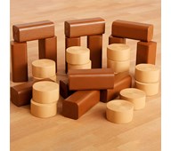 30 st/fp. Klossarna ser ut som äkta träbitar, men är gjorda av mjukt skum som kan användas både inomhus och utomhus. Bygg en timmerstuga eller en bro att hoppa över. Setet innehåller 15 stockar och 15 runda skivor. Mått: 11,5x11,5x5,5 cm och 20x8x8 cm. Torka rent med fuktig trasa. PVC-fri. Från 3 år.