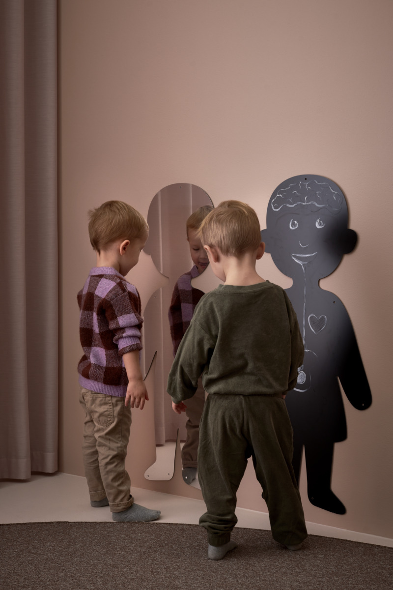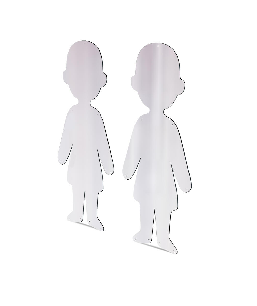 Set med två vädertåliga spegeltavlor formade som en flicka. Fäst dem mot stängsel eller staket och gör lekplatsen till ett roligt och spännande område att utforska. Mått: B89,5xH99,3 cm. Förborrade hål för enkel uppsättning. Fästanordningar medföljer ej. Tillverkade i ACP.