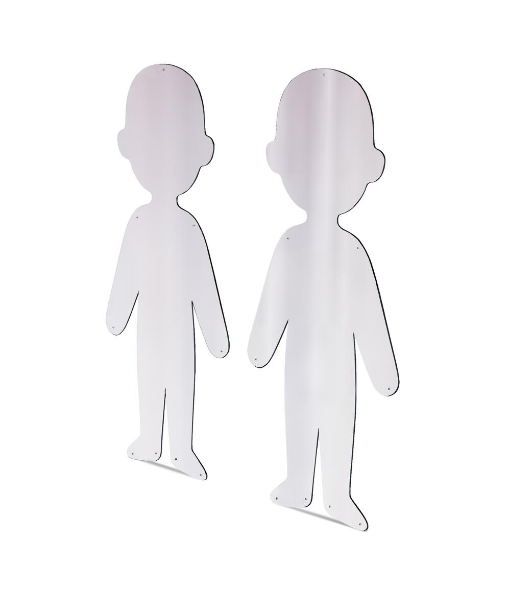 Set med två vädertåliga spegeltavlor formade som en pojke. Fäst dem mot stängsel eller staket och gör lekplatsen till ett roligt och spännande område att utforska. Mått: B89,5xH99,3 cm. Förborrade hål för enkel uppsättning. Fästanordningar medföljer ej. Tillverkade i ACP.
