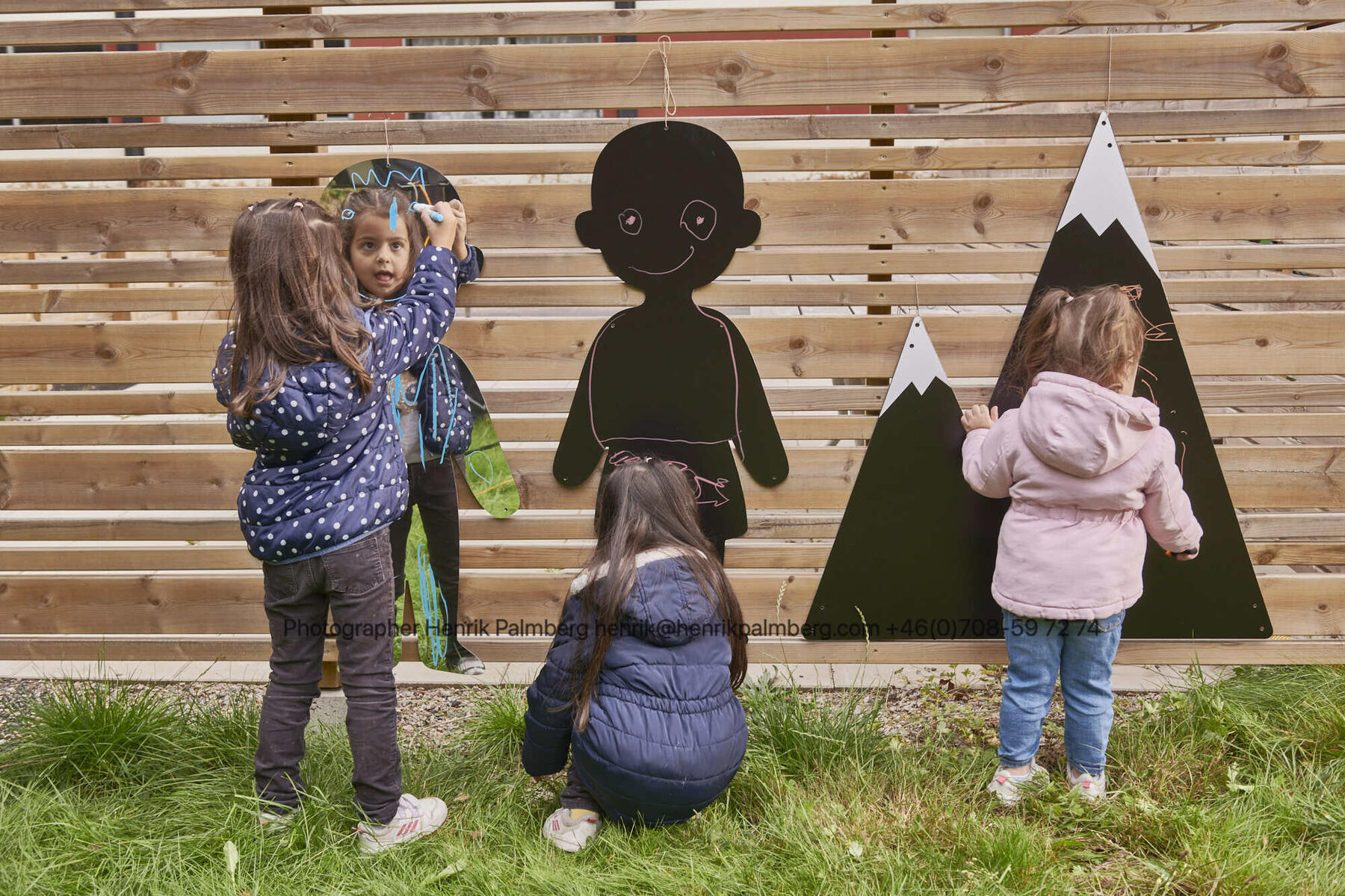 Set med två vädertåliga griffeltavlor formade som en flicka. Fäst dem mot stängsel eller staket och gör lekplatsen till ett roligt och spännande område att utforska. Mått: B89,5xH99,3 cm. Förborrade hål för enkel uppsättning. Fästanordningar medföljer ej. Tillverkade i ACP.