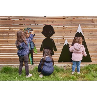 Vädertålig griffeltavla formad som ett berg. Fäst den mot stängsel eller staket och gör lekplatsen till ett roligt och spännande område att utforska. Mått: B89,5xH99,3 cm. Förborrade hål för enkel uppsättning. Fästanordningar medföljer ej. Kritor köps separat, se artikel 46571. Tillverkade i ACP.