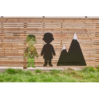 Set med två vädertåliga griffeltavlor formade som en pojke. Fäst dem mot stängsel eller staket och gör lekplatsen till ett roligt och spännande område att utforska. Mått: B89,5xH99,3 cm. Förborrade hål för enkel uppsättning. Fästanordningar medföljer ej. Tillverkade i ACP.