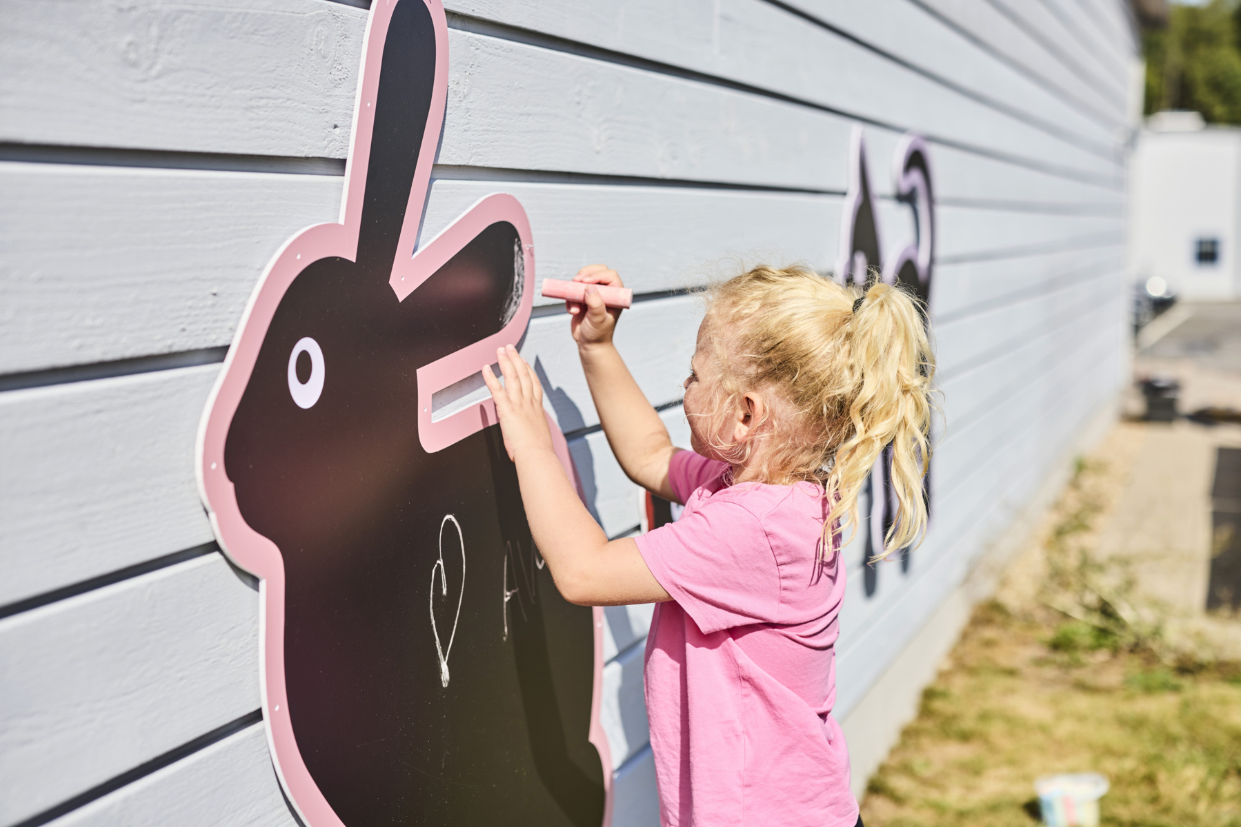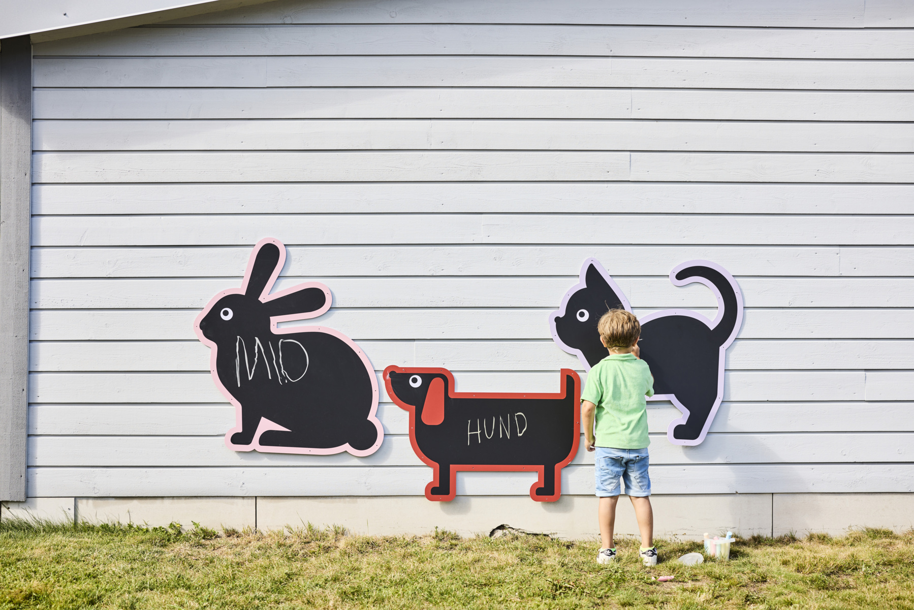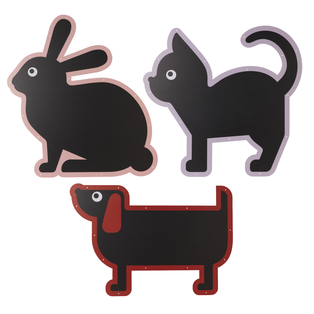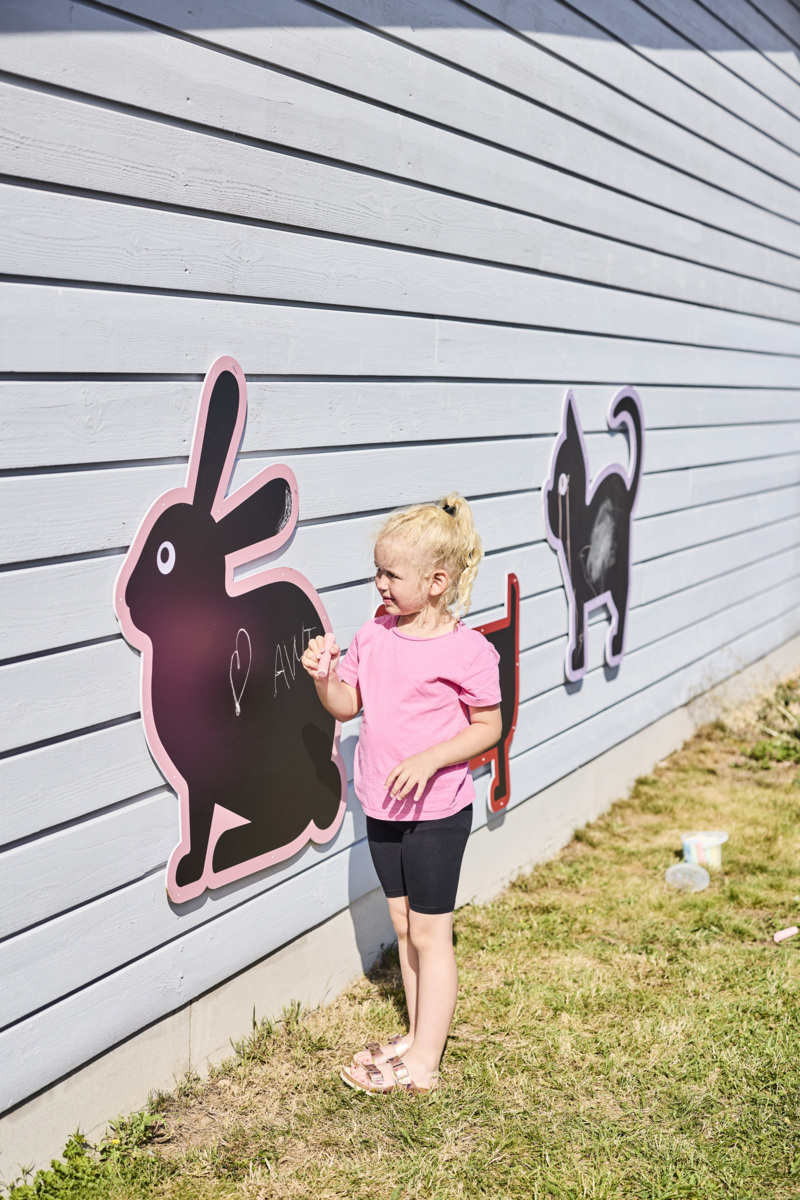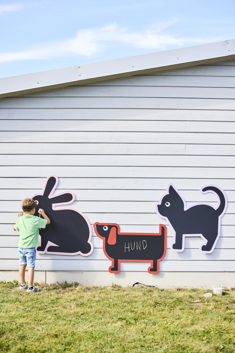 3 tavlor. Måla utomhus på dessa vädertåliga griffeltavlor formade som djur. Fäst dem mot stängsel eller staket och gör lekplatsen eller gården till ett roligt och vackert område att utforska. Buntband av plast som kan användas vid upphängning medföljer. Kritor köps separat, se artikel 46571. Innehåller 1 katt, 1 hund och 1 kanin. Mått kanin: 105x93 cm. Från 3 år.