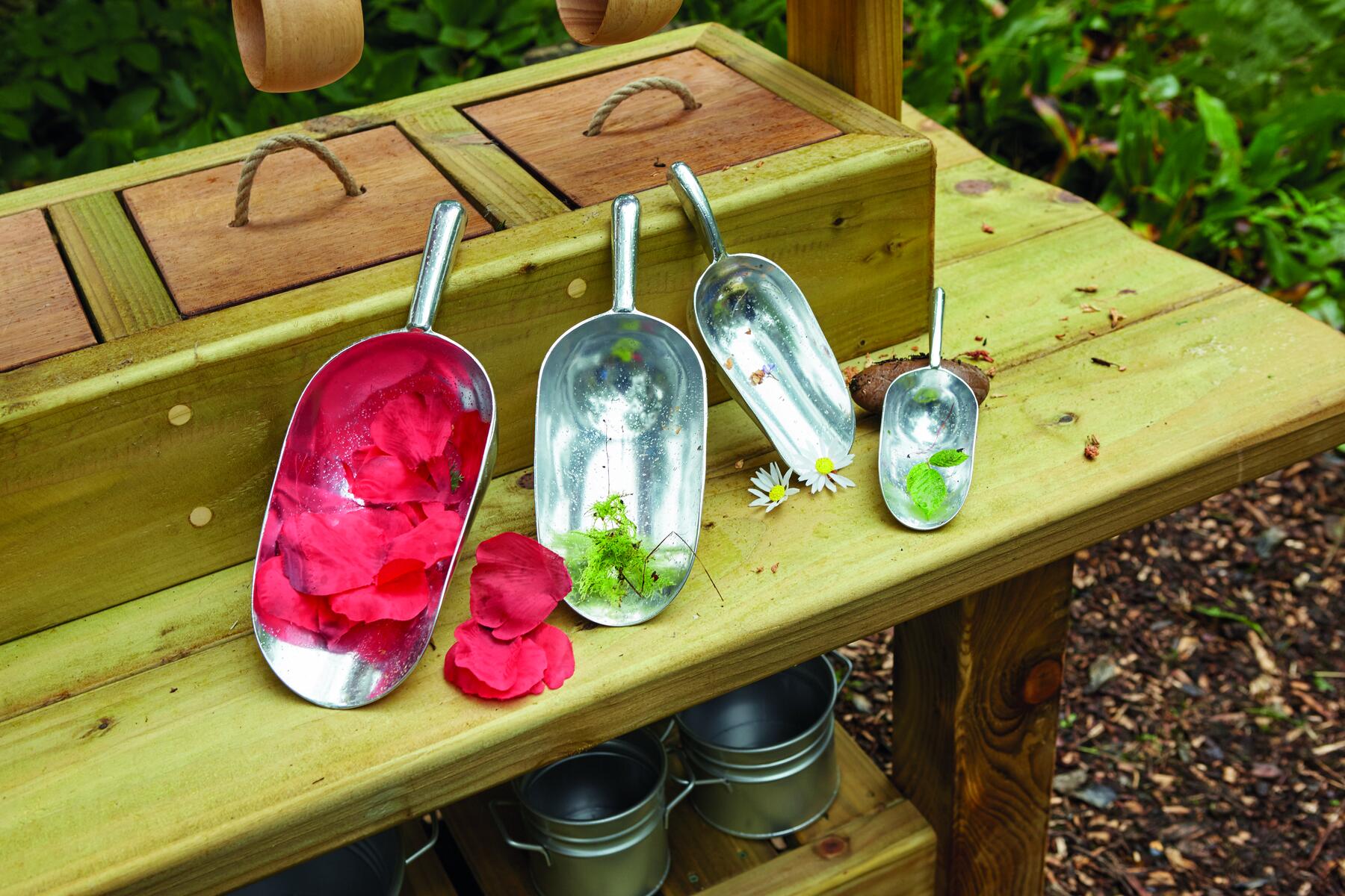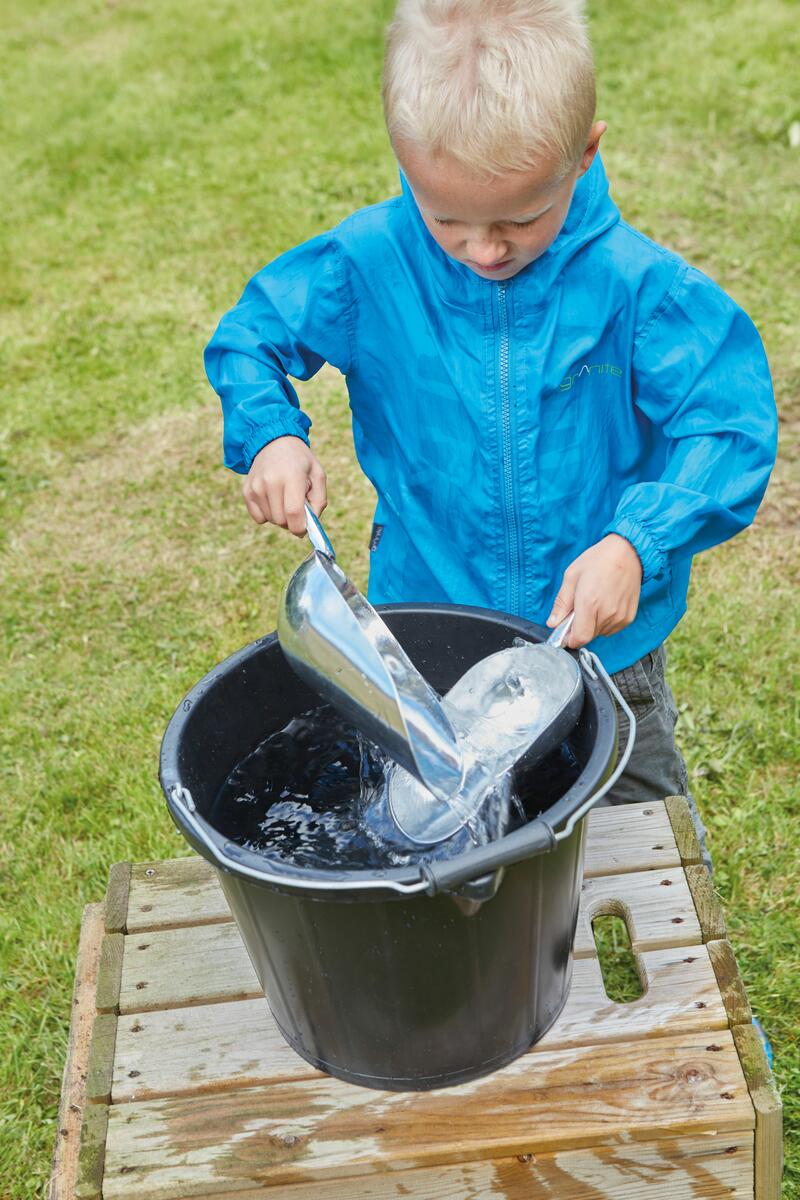 Praktiska baljor och kärl som enkelt kan placeras och flyttas runt i utemiljön. Används till att samla material, till rollekar eller till lek med vatten och lera. Innehåller 3 burkar i olika storlekar (den största: ø 18 cm) och 3 baljor i olika storlekar (den största: ø 26 cm). Tillverkade av galvaniserad metall. PVC-fri. Från 3 år.