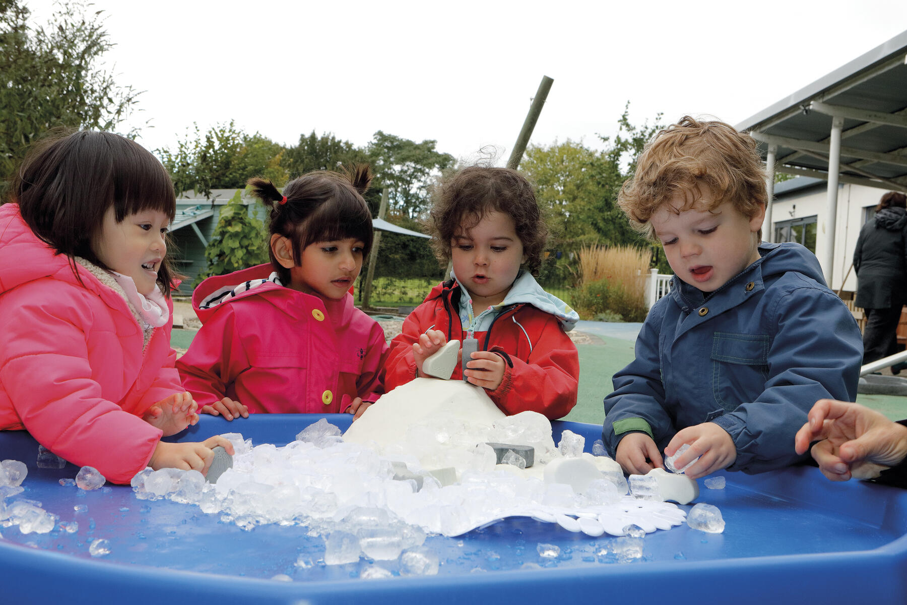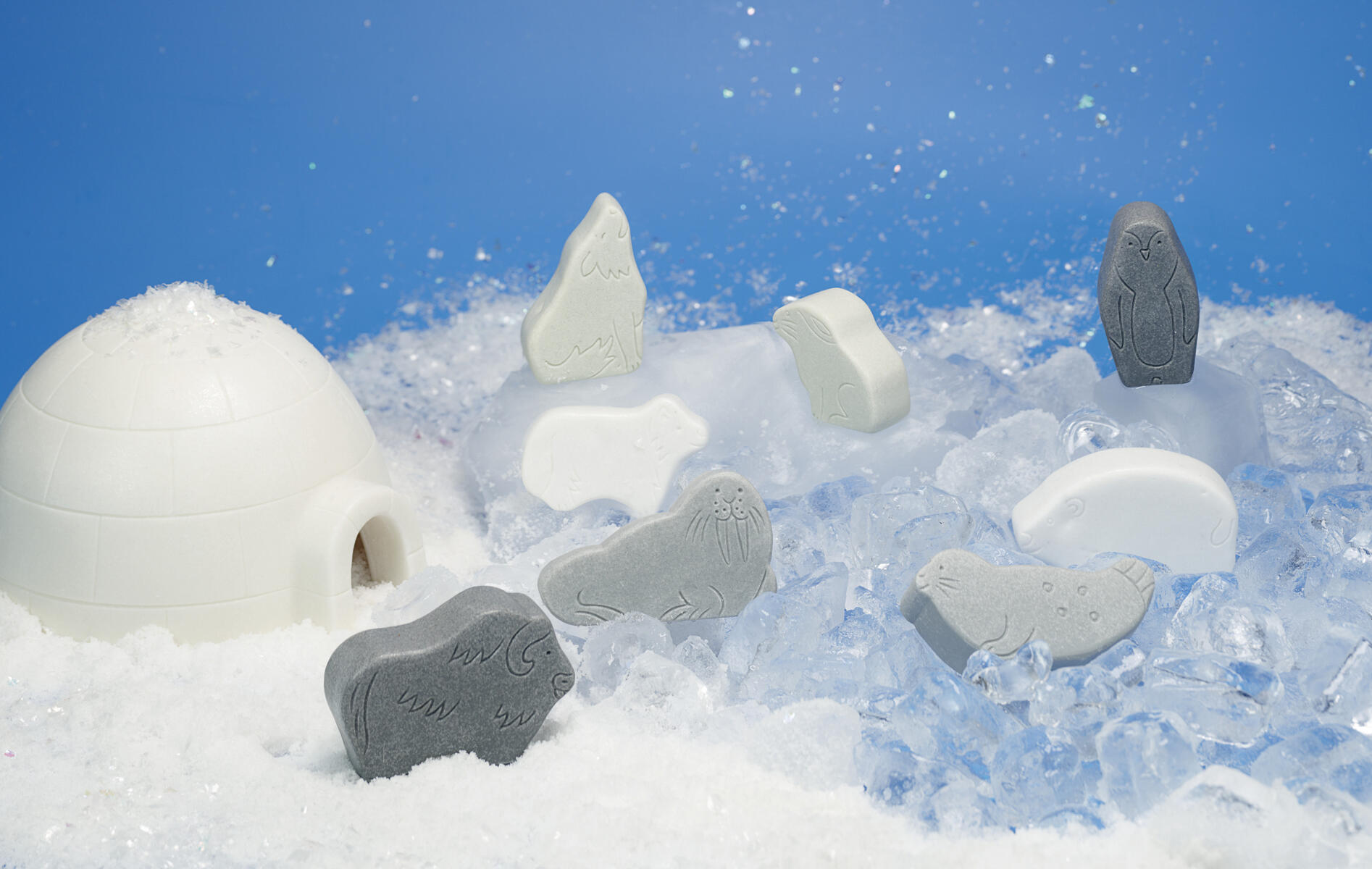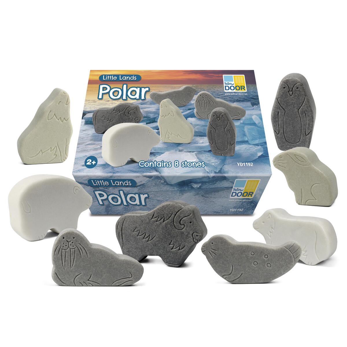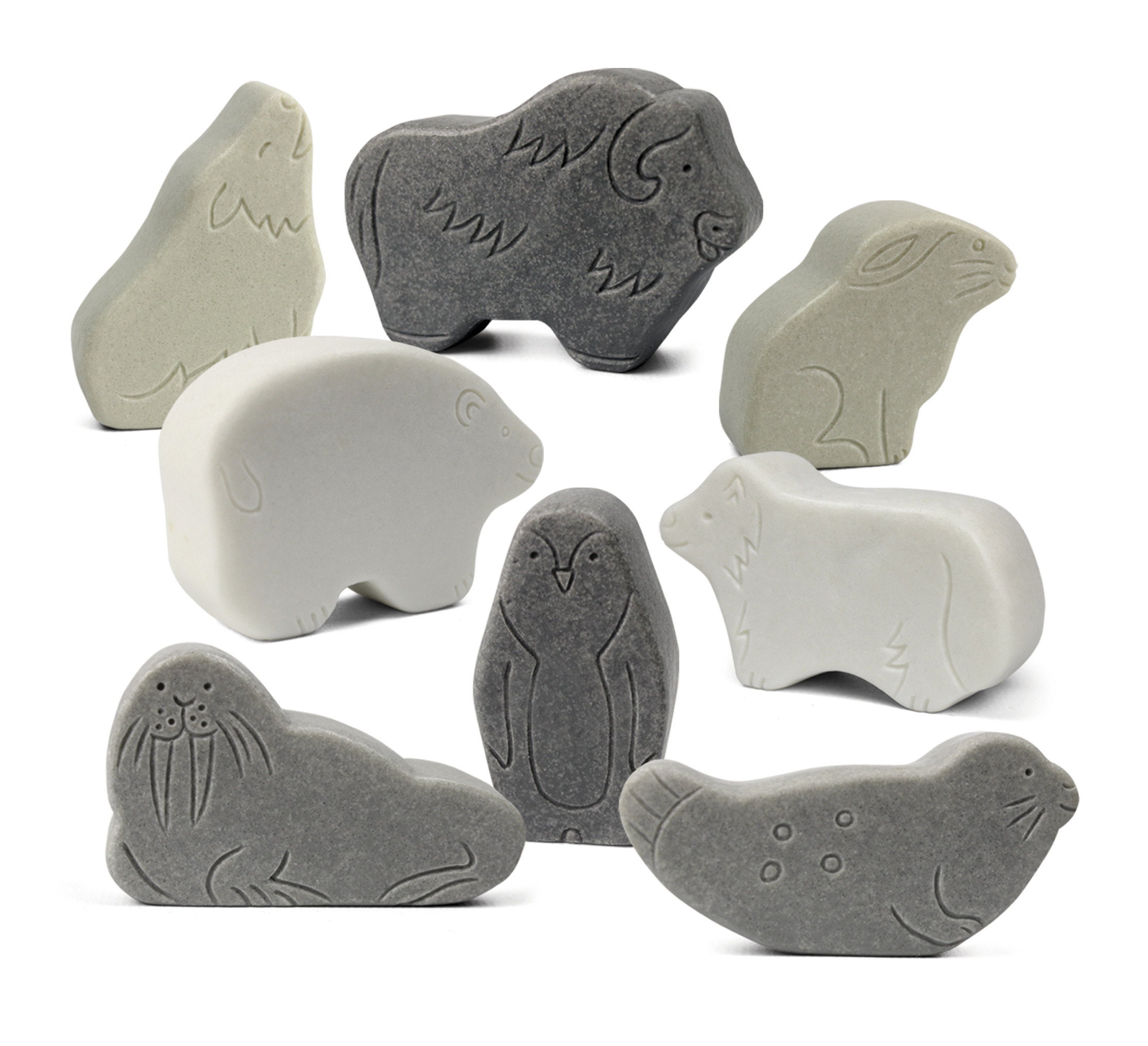 8 st/fp. Set med tilltalande djur som är perfekta för isiga, fantasifulla lekar. Taktila figurer tillverkade av sten, tuffa nog att användas utomhus och i vatten, is, jord och snö. De etsade detaljerna och naturliga nyanserna ger mycket att prata om och utforska. Setet innehåller: fjällräv, fjällhare, fjällvarg, myskoxe, pingvin, isbjörn, säl och valross. Höjd ca 5 cm. PVC-fri. Från 2 år.