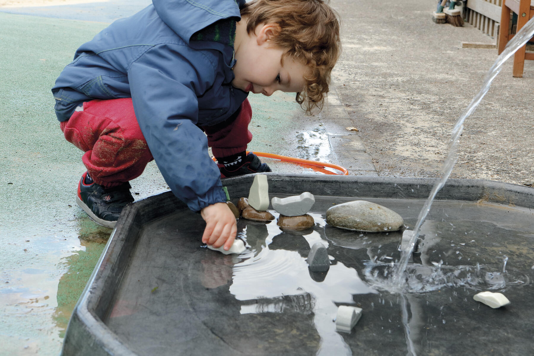 87 delar. Ett paket som hjälper till att flytta ut verksamheten. Med slittåliga ingredienser av sten kan barnen, året runt, laga mat från olika delar av världen i kombination med både sand och vatten. Från 2 år.