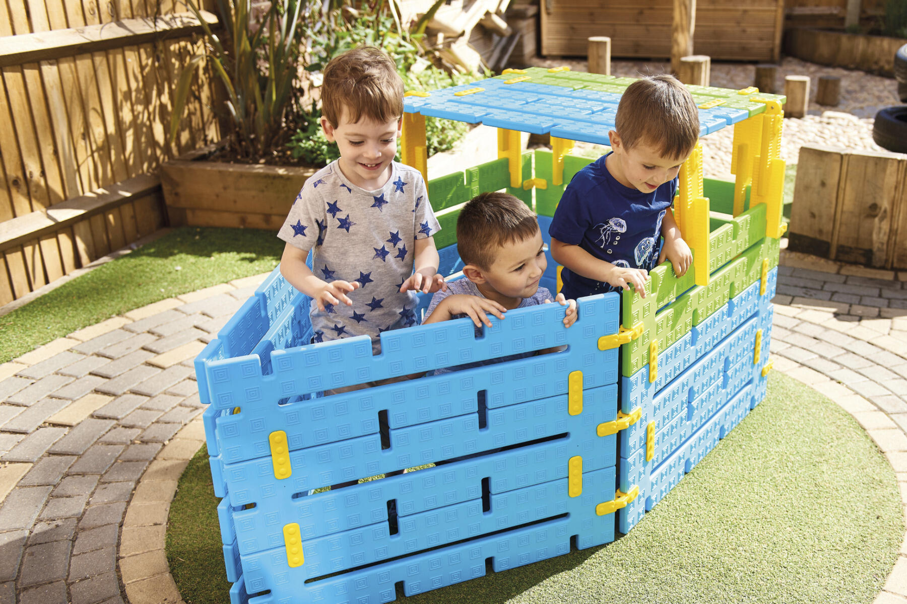 76 delar. Ett stort byggsystem för inom- eller utomhusbruk. Stora klossar som enkelt byggs ihop med kopplingar. Bygg en egen båt eller en koja. Lämpar sig väl för samarbete. Innehåller 18 plankor, 18 stora kopplingar, 24 små kopplingar samt 16 flexibla kopplingar. Av HDPE. PVC-fri. Från 2 år.